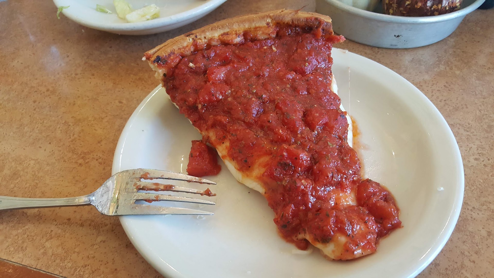 Read moreStuffed Chicago style pizza. I checked this off my wish list. I always wanted to try this style of pizza and it was one of those days where I had to do it! Anyway it was a good pie and very filling. I would would have to say that this is the best tasting leftovers pizza I ever ate! I could not finish the whole pie and had leftovers about two days later I put the leftovers in the microwave and Good Lord those were some excellent leftovers ! All in all I like regular pizza so I hope to try their regular pie. I gave four stars because it was good but I like regular pies better. Still a good review. But what I will give FIVE STARS to, were to the young super hero women that were working the counter up front that day. They were all of Amazonian Blue Blood! Like Wonder Woman! I could not believe their work ethic and how they were moving with great importance to get the job done! The owners should be very proud of those young ladies and their Great Work Ethic!! Very Nice to see from an older man. Especially when I see a lot of this younger generation lazy and slow moving as F*?#! But those young ladies made my day. I am a guard and I am paid to observe and report! And I like what I saw. All were young beautiful and in shape and on top of that GREAT WORK ETHIC! One though I believe was Diana and she was wearing a red shirt the day I went in. Super COOL! So to those ladies 5 stars and you gave an old man hope for this world!! I salute...