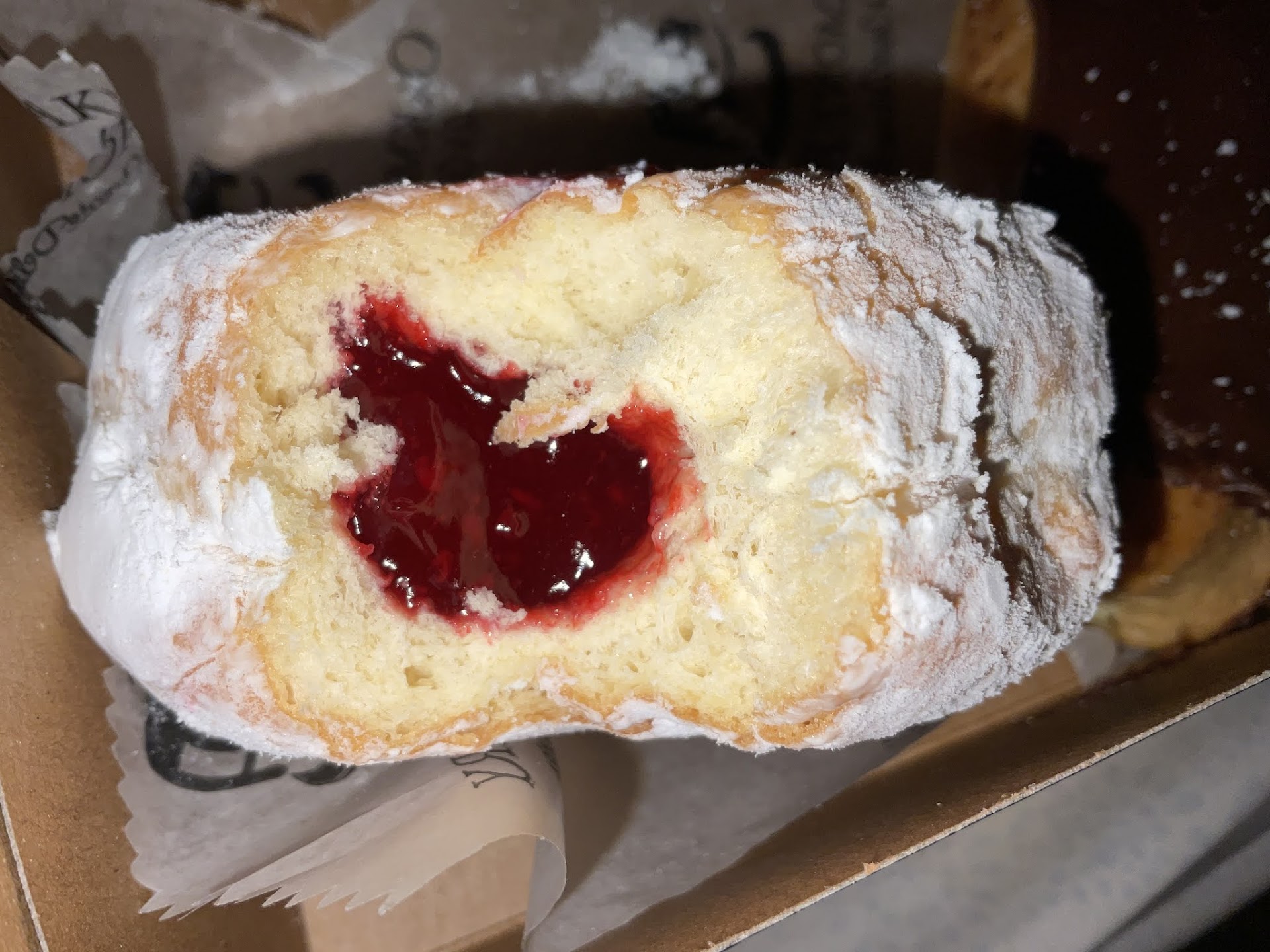 The brownie was a little small, but absolutely delicious. Super fudgey, sweet, creamy, and just perfect. Soo much better than the stuff at the grocery store. The custard eclair had a great chocolate top, which was nice and gooey. The custard cream was very tasty but the eclair "dough" was only alright. The jelly donut was quite large and filled pretty well, had a nice dough texture, but it didn't stand out to me.
