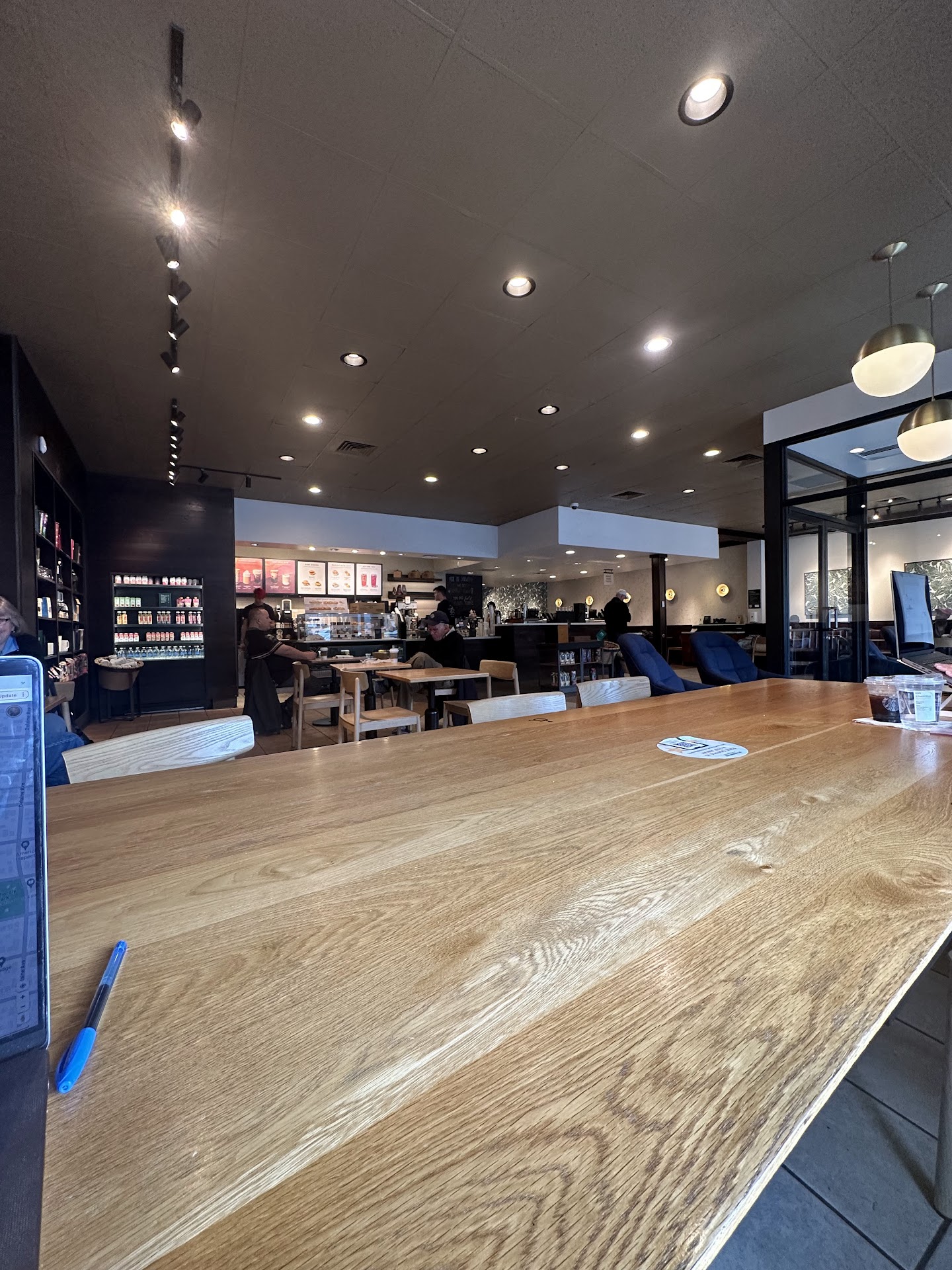 I come here frequently during the week to work because of the people that typically hang out and work here as well - lots of business professionals, college students, young families, and older retirees. People frequently walk and bring their dogs too which is a nice treat if you're a dog person. It just feels more homey than other starbucks :)