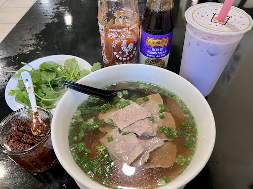 When I came in, I was greeted & sat down immediately. I got the Pho Tai (#3) & Taro milk tea. The Taro milk tea was on of the best Taro teas I’ve ever had (& I’ve tried soo many!). The packaging also with the cute clear top, to the pink straw, was a nice/cute touch. The Pho was amazing! The ratio to beef to noodles was perfect. At first I thought it wasn’t enough broth, but after eating my entire bowl it ended up being perfect! The veggies were fresh & a good amount was given! I also love the chili oil they had too!