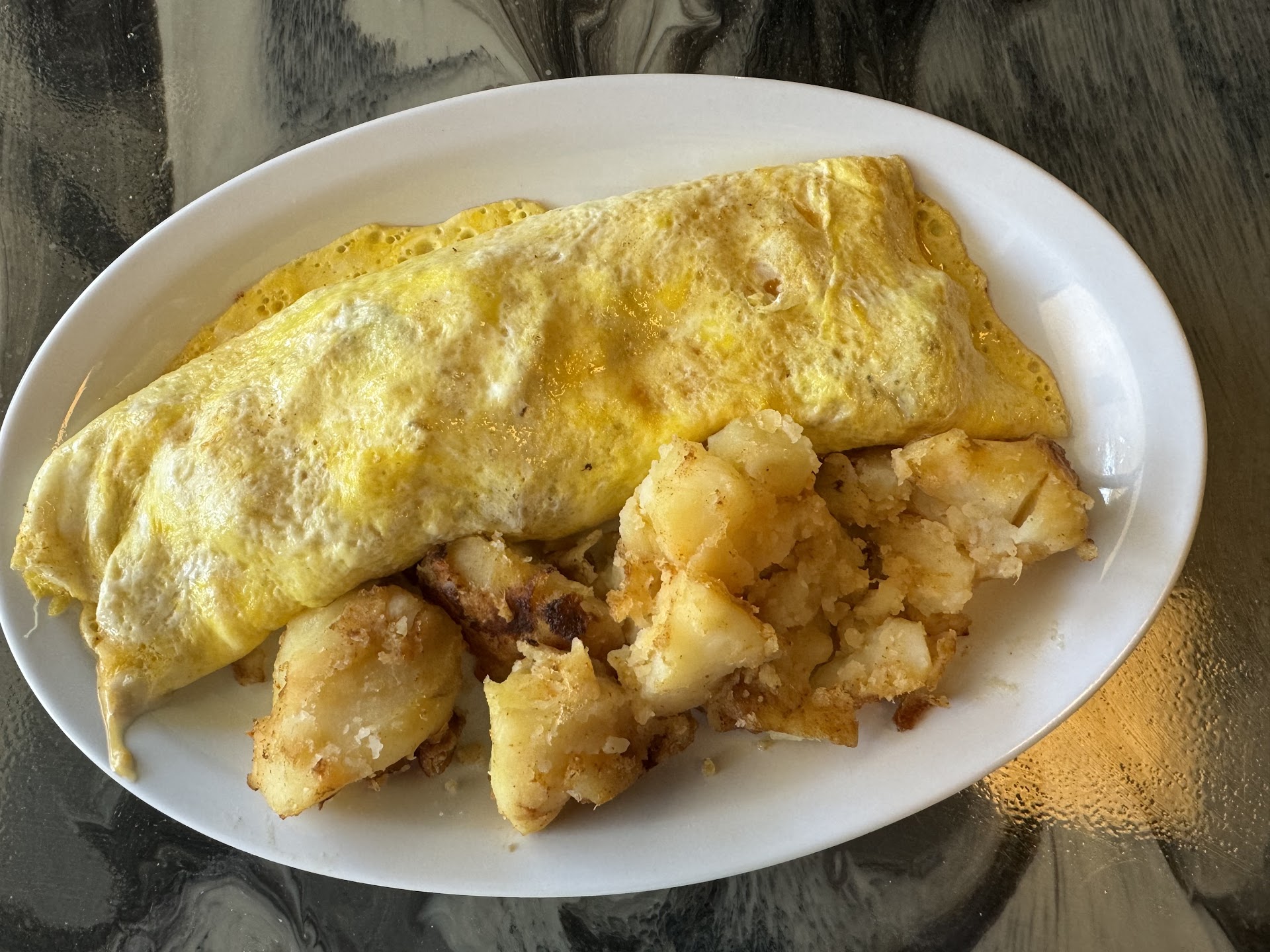 I ordered scrambled eggs with cheese, smoked sausage, home fries and a couple pancakes. The food was not cooked exactly as I would’ve liked, as the eggs were a bit on the soft side, the sausage was just a few moments away from being outright burnt, and the potatoes were not crispy as I had requested. However, not having the time to send it back, I tolerated it and found everything to be quite tasty.