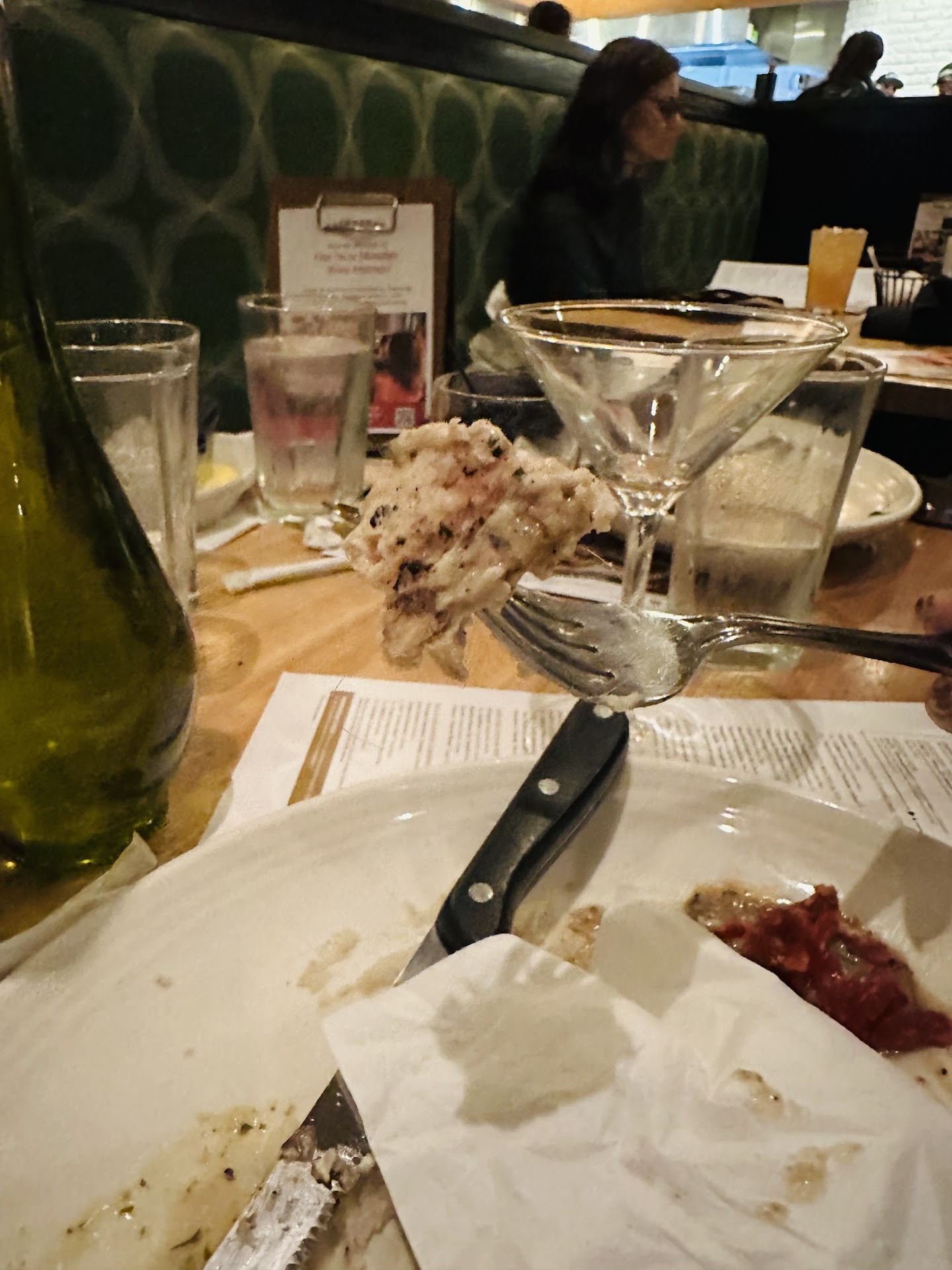 We tried to order a new appetizer but they did not have it, again no biggie, we understand shipments get delayed or stuff just doesnât come in, so we skipped having one. Ordered our main courses and was first told they didnât have one of them but then they said they did. When our orders came to the table, there was at LEAST a pound of mashed potatoes on my boyfriendâs plate with his short rib, which we again laughed off and were totally fine with. However, the short rib was DRYYYYYY and so fatty, he took about 3 bites and he was done, the potatoes werenât even mashed all the way either. My pasta side dish was so overcooked and my veggies were so soft they disintegrated basically as I tried to eat them. Steak was overdone and was a really weird cut. We are not ones to send food back, because welllllll, have you seen Waiting? We just did not want to be âthose peopleâ.