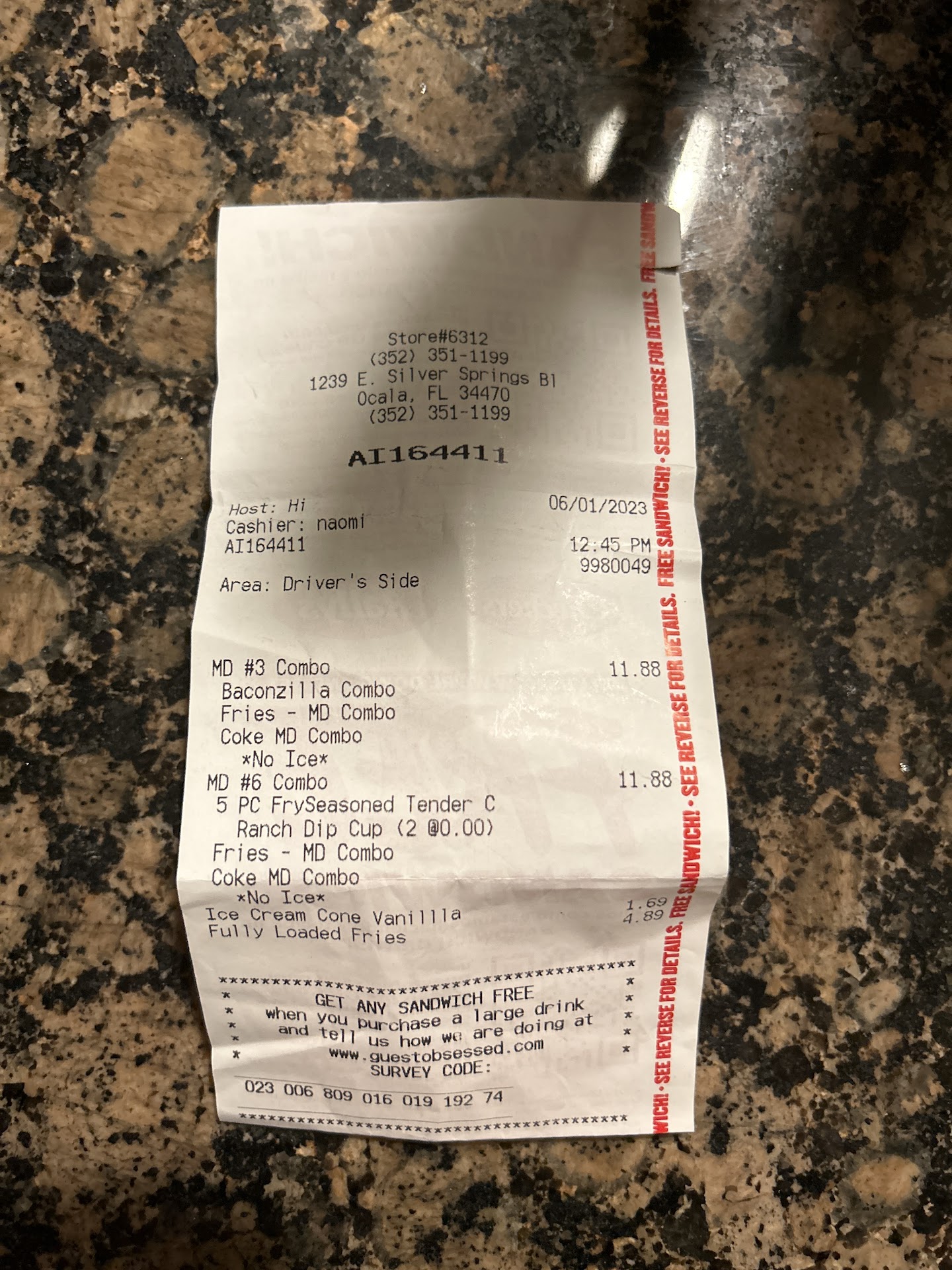 When I got to the window I was giving my food and drink