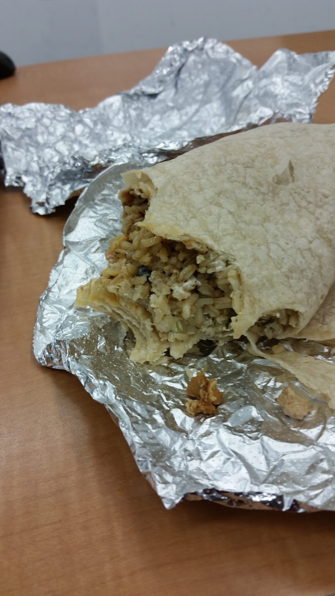 Neither of the staff members knew how to wrap them properly. They struggled so much that they had to use two pieces of foil for each burrito – despite them being small, not overfilled.