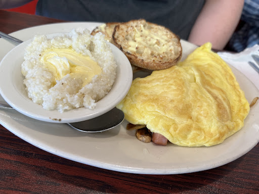 Read moreI am writing this review, with understanding that it was Sunday morning, very close to lunch time. With that being said, it was barely worth the one star. We had a 6 adults and one child, and split the checks. The server seemed to be overwhelmed, and wasn't really on top of the drinks, had to constantly ask for refills. Our orders weren't difficult, everyone ordered breakfast, and nothing wild, just breakfast. I ordered there highly touted Philly cheese steak omelet, per the menu. A few baskets and gravey, and pancakes, a waffle were the other orders, simple breakfast orders. Not sure the kitchen understands the temperature or cooking methods for eggs, none of the eggs were cooked to order, one set were not even sunnyside....RAW! Raw eggs, at a restaurant? Insane. Biscuits with little gravy, and pancakes without butter at the table. My omelet had 3 pieces of meat, a few peppers and onions, and a ton of jalapeños. It was TERRIBLE. I would have complained, but it took FOREVER to get the food, and it was cold. We had a toddler with us, and I knew it was a time bomb ticking for him to remain seated, so I just ate it. Another person at our table complained about her RAW eggs, and her pancakes that were not delivered at time of other plates, that were NEVER delivered to the table. Asked 4 times for butter, never offered refills, had to ask everytime. Just terrible service and the food was not good. I understand that it is a difficult industry, and when your busy, it's even more difficult, but if you can not offer better than that, you won't see my business again. Darrelle is usually a decent place for breakfast,but this time it...
