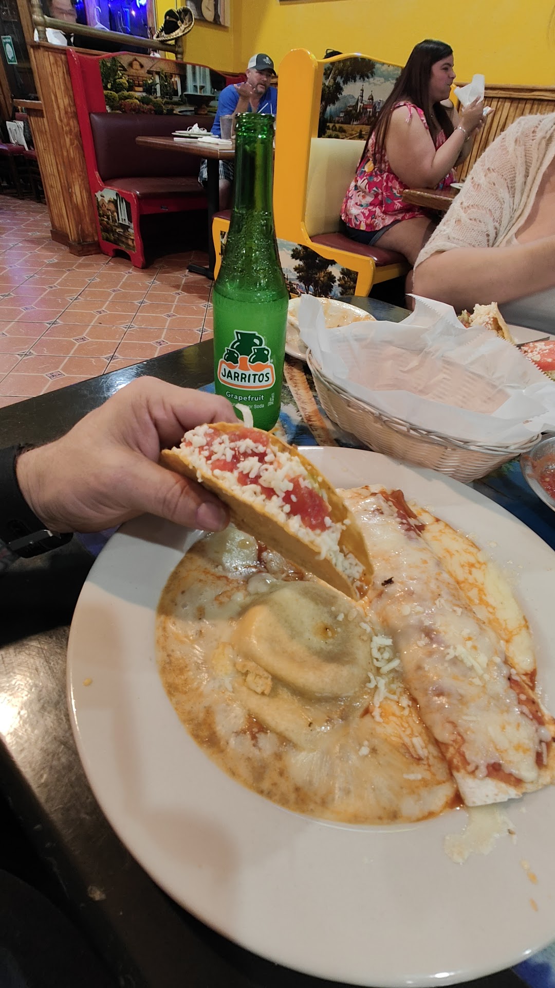 Read moreJust had our 3rd and Last Bad Experience Here! Things have progressively gone down hill. from good to BAD here. We have a list of 6 other Mexican Restaurants that have been referred to us so we will go elsewhere. First of all...We KNOW WHAT CHILI RELENOS LOOKS LIKE. IT is a BIG PEPPER WITH A STEM with batter around it filled with ground beef or cheese. What you brought us was NOT any Meat and No Ground Beef and No Large Pepper in sight. That gruel looked like Brown Beef Baby food melted with some cheese! Discusting! There was NO Sizeable Green Or Poblano PEPPER On The Plate To be FOUND!! One tiny sliver of some kind of pepper laying inside hidden in a horrible dough ball! If you were OUT..JUST SAY SO! This looked like something the dog would eat or a child just getting his teeth in and it was SLOP to the tune of $11.99!! How do you bring this kind of WRONG DISH to a Customer? But you did and you came to the table and said that the slop that looked like beans or baby food was ground beef??...WHO WERE YOU FOOLING? But yourself. Terrible Customer Service here once again. That plate should have been removed and the amount taken OFF OUR BILL AND YOU KNOW IT! My Chicken Burrito meat was SO TOUGH I could not chew it and I had to SPIT IT OUT! The Worst over done chicken meat ever! Had to send it back for a replacement of a pulled beef burrito...which appeared fresh. The chips here are so horrible and tasteless. Buying their chips from some cheap factory. We will be looking for those who make their own...fresh in their restaurant. We have seen other restaurants who DO...Make Their Own Chips and are delicious according to Reviews. What Customer has THIS MUCH TIME TO BE TREATED POORLY ON 3 OCASSIONS AND OVER CHARGED?? We...