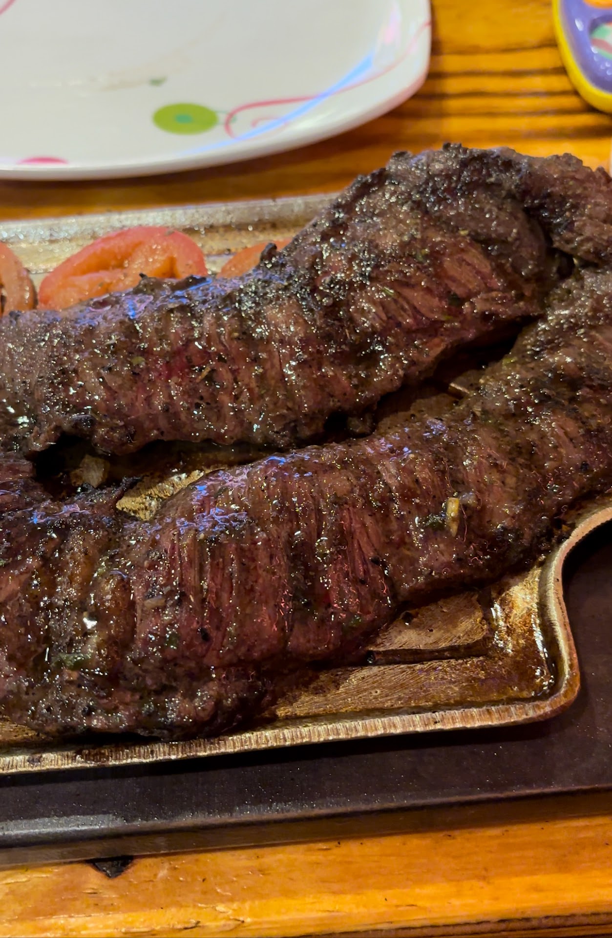 The steak was a bit on the chewy side and the blood sausage was very dry. The chorizo was my favorite but the corn cake may as well have been a coaster for all the texture and flavor it had. The steak entrees (as opposed to the ones mixed in with other ingredients) are served on a sizzling hot, cast iron plate and will continue to cook as you eat, so you'll probably want to order a lower temperature than normal as we got a medium steak that was well done by the halfway point.