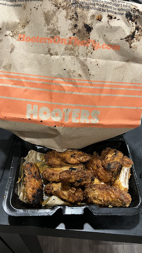 Now I remember why I quit going here! We went at lunch time with a party of 6 for a birthday party and to say we were disappointed with somewhat of an understatement. We were seated in the back section past the bar. As we walked through I noticed the front section was fairly full and there was only two other tables in this back area. While we were sitting there waiting for a server 2 other server's approached us to let us know that our server would be with us soon. No one offered to even take a drink order! It was almost 15 minutes before our server even showed up to the table to take our drink order. We had two drinks coming from the bar and for that the server brought to us. It was about another 20 minutes before the drinks from the bar showed up. They had been sitting there a while as the tall beer was warm and the ice in the liquor drink had time to almost fully melt. After about 45 minutes the food started to show up to the table. As normal with this Hooters there were deficiencies in the order. Every time we would mention something was missing the server would say that's cuz we're making it fresh right now. So after a total of about 20 minutes all of the food eventually made it to the table. At one point the server stopped with our delinquent food in her hands to have a conversation with other servers while we sat there staring at her. At one point during our long wait, The server showed up to the table with some extra plates silverware on them. We assume that meant our food was coming soon. Boy were we wrong. There wasn't even enough silverware there for everyone sitting at the table. Eventually we were able to track down somebody busing tables to bring us some. One of our party members ordered a salad. It showed up without the salad dressing. Two of the people ordered side orders of fries that were supposedly being made fresh just for us that showed up cold. The other items that didn't we just gave up on! Although there are a lot of TVs in this restaurant. There was absolutely no background noise. Not a TV turned up no music playing nothing going on. Our total time in the restaurant for a party of six was about 1...