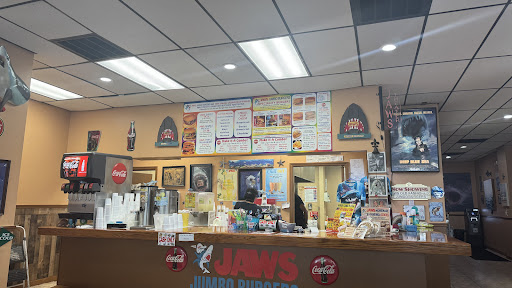 Read moreCASH ONLY. I drive back and forth between ATL and Wildwood, FL every month or so. With fast food prices rising (a double QP with cheese is $6.80), I want good food over fast food on my trip. Jaws Jumbo Burgers has been lurking in the 4.5+ review waters for a bit and I finally dove in. The sweetest couple (Darryl and Yolanda) has captained Jaws for 40+ years, sailing their restaurant from MI to TN and, finally, to FL. I was advised that these burgers are not built for eating on the go in the rough waters of I-75; but like all horror movie victims, I ignored the good advice and the result was blood (ketchup) on my shirt. I recommend getting bitten by Jaws Jumbo Burgers