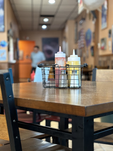 A true mom and pop. Ma was running the register and pops was in the back cooking. I enjoyed the large screen playing peaceful videos of sharks swimming. Everyone working was friendly and helpful. We wanted to compare with Five guys, so my husband got Five guys and I got Jaws JUMBO burgers. When it came to taste side by side they are very similar. Five guys is definitely tangier. Jaws burgers are juicy but not WET. Five guys burgers can be so wet and by the end its just a soggy blob. Jaws jumbo burger held up well but it was tender and crumbled in my mouth. Just wish I got a single as I really did underestimate the Jumbo description. Jaws burgers are bigger than Five guys (Which makes it so you dont need as many fries). Speaking of fries, Five guys of course gives you a larger portion than Jaws. Five guys has more flavor as you can get Cajun seasoning. I find that Five guys fries are always soggy though. Jaws fries were hot and CRISPY the entire meal. My husband placed a mobile order for Five guys that I picked up. I still waited while being ignored for about 15 mins then had to wait an extra 5 mins for fries. I placed an order in person at Jaws Jumbo burgers and only waited about 10mins.They even made sure I had ketchup, salt packets, and napkins in the bag. Over all for the value and taste of food I'd just support the local business. You can tell they really do enjoy their jobs and this is their dream. When I tell you good food is hard to come by in this town, it is. This...