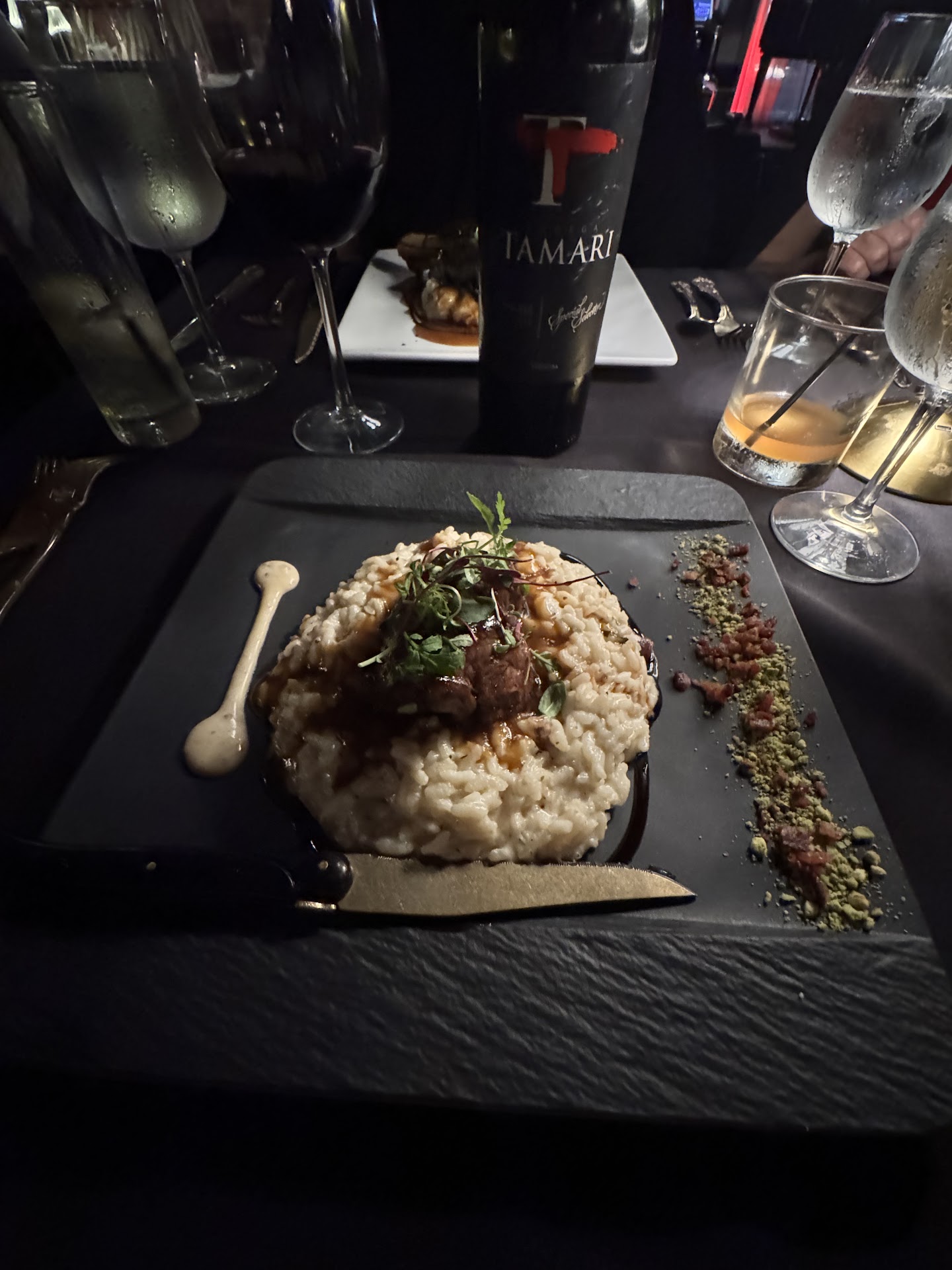 Ordered a second glass of wine but from the katya vineyards personal collection. David who is also the owner, for the most part slammed it on our table and retreated back to the bar without a word or a smile. From the moment we walked in to the moment we left, at no point did he acknowledge either of us, inquire about our meal, thank us for coming and or tell us goodbye when we left. Either he was having a bad night and or had other things on his mind at the time, you would have thought that for over the $200 we spent on dinner that he would have at least thanked us. That aside..