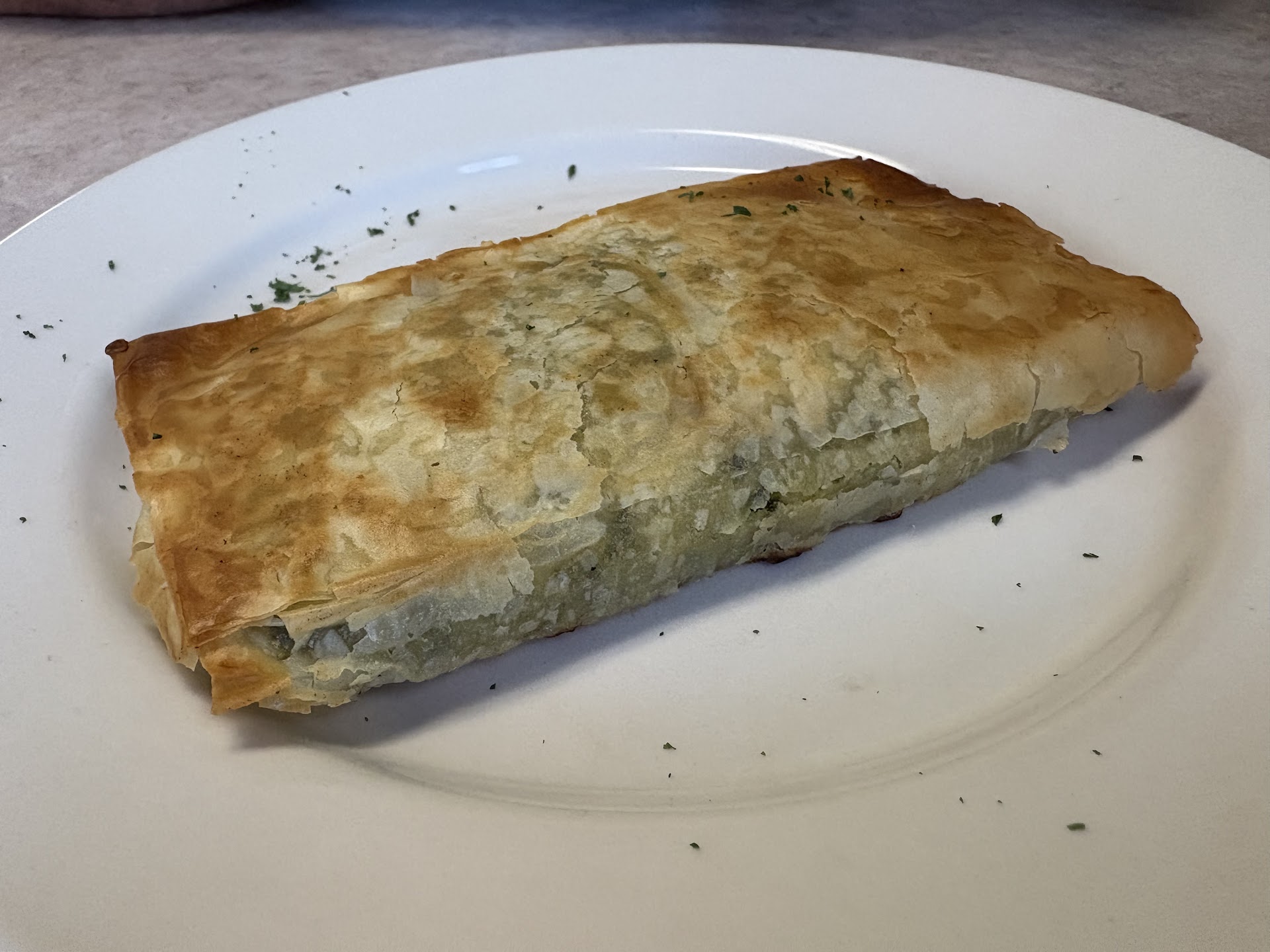 My sister ordered Spanakopita as an appitizer. I gave it a try and could have just kept eating that and called it a day. She ordered a gyro and a greek salad...I will never eat another gyro so I ordered the the Atenian pasta which came with a greek side salad and a garlic bread. First, I'm certain it was my lunch today, dinner tonight and likely my lunch tomorrow too, the portion was just way more than one person could, or at least should eat.