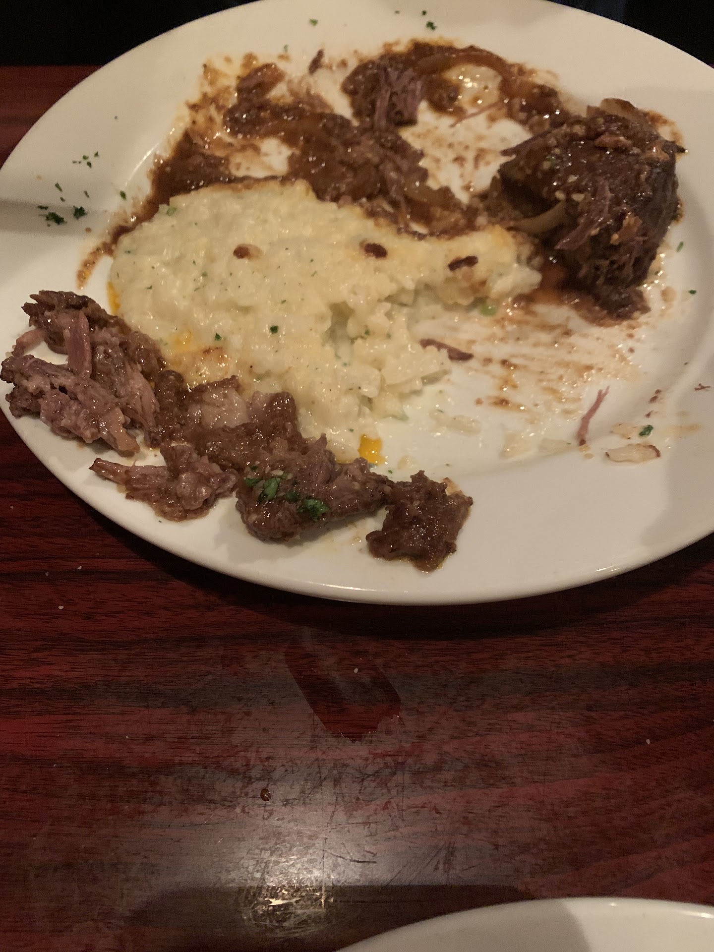 Read moreCONS: We were pretty excited to try this place out...what a let down. We felt like maybe our waitress didn't want us as a table? She hardly came to us, and left us for long stretches. After we ordered, we heard the table next to us(a different waitress) get offered a special appetizer. We would have loved to order that. AND they were offered Swordfish and a duck special, that we would have also ordered if we had known about it. Plus, she asked us if we wanted her to bring more bread, and we said sure. She never came back again until we received our dinners, with no bread. She left us for so long between stretches, that I gave her my credit card before any mention of the bill, because we didn't want to have to wait for fifteen minutes for her to bring the bill to the table. It was still quit a long wait. PROS: What we ordered was pretty good. My husband got the short ribs, which were a little fatty, but tasted very good. I ordered the Sorrentino veal, which tasted great. The food itself was not...