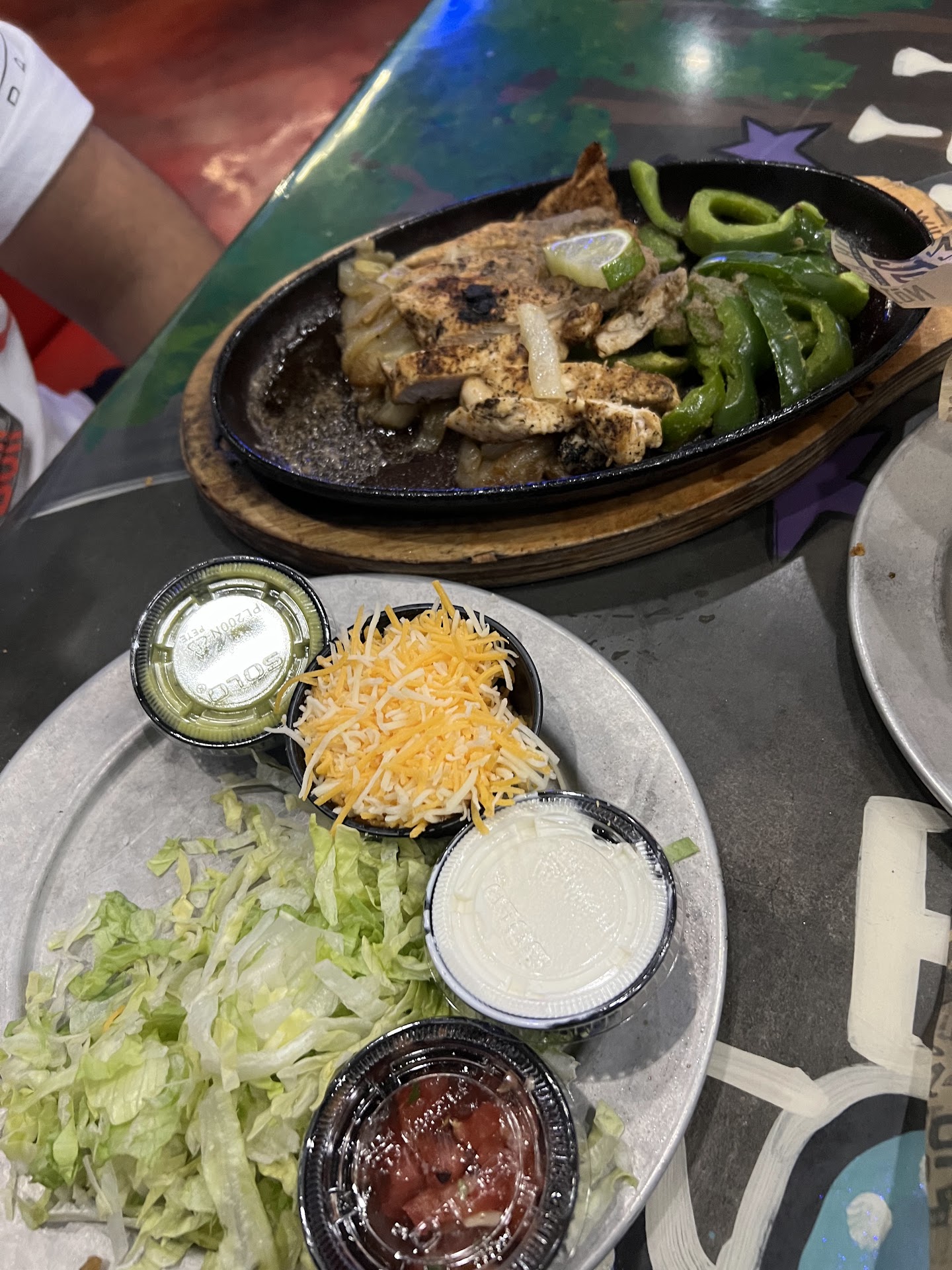 The fajita platter was disappointing—the chicken was overcooked and lacked flavor, so we had to drench it in Cajun ranch just to make it enjoyable. The fried pickles were a letdown too—way too salty and over-seasoned, plus they were more soggy than crispy. A few had a good crunch, but they were tiny, almost like crumbs.