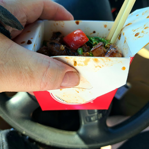 Read moreFor cafeteria style food the line was awfully long. On person frantically trying to fill orders for both the drive thru and inside customers was doing everything she could to keep up. One person doing checkout who had to open boxes to see what was inside to know what to charge. The person doing checkout was also in charge of providing tiny cups of sauce and filling utensils at the drink station across the dining room. All while a line backed up to the door. Very few tables are available as it is. One of those tables is a large communal high top, half of which was unavailable because the staff has left what looked like new promotional posters sitting there ready to be hung up. The food was uninspired at best. Fried rice was bland (probably why people ahead of us in line asked for so much soy sauce). The broccoli in the beef and broccoli was undercooked. The noodles where stale. Nothing on the menu had a description so if you don't know what's in a dish you are left to ask the frantic server who isn't giving you her full attention or guess based on name and sight alone. With slower service, fewer options, and lower quality food than the rest of the Chinese takeout places I'm not sure what would bring...
