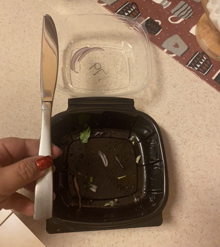 We pick up the order at the time I told them and brought it directly back to the house. The salad was so small with one small slice of provolone cheese, one small slice of salami and a half a slice of ham. There was one green olive, one kalamata olive., 2 tiny pieces of artichoke hearts, 3 cherry tomatoes, and a bunch of red onion and mixed greens. I wish I had a picture of the actual salad, but I am showing a picture of the size of the container that they charged me almost $9.00 for. Not saying the salad wasn't delicious. It was. But seriously??? 9 Bucks for a salad that small? No. Just no.