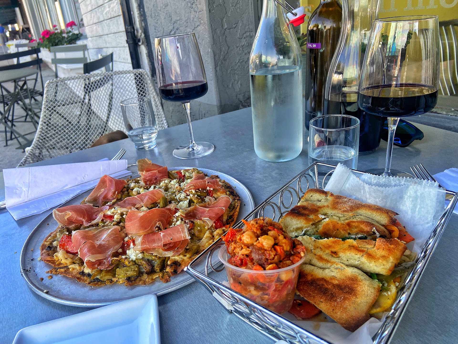 Read moreFirst, if you live near Ocala and haven’t been to the downtown square area where Stella’s Modern Pantry is located lately, you really need to check out how it’s transforming. There’s lots of great new places to eat, drink and shop, all within walking distance of each other. But on with the review of Stella’s. The interior ambiance is modern as the name implies and that really stands out in contrast with the rest of the old Florida feel you see in many of the other places in the area. (See photo). As you will see in the photo they have a nice selection of wine. The menu is also included so check that for details on corkage and the standard house choices. While talking first order options they have the usual choices with beer, wine, cocktails and non alcohol choices but they also offer Jamaican coffee, Greek coffee lattes, cappuccinos and even French press. Now on to the food. I ordered the Roasted chicken and garlic flatbread and it was excellent. Very thin crust and thoughtfully proportioned ingredients appropriate for the base. (See photo).