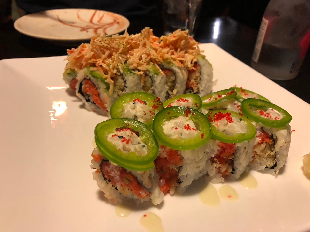 At one point during the salads and misos a server (not ours) was complaining loudly about the heat. Stood in front of our only fan and begin wiping her forehead and armpits with paper towels while we are eating. So happy my family didn't noticed or someone might of flipped.