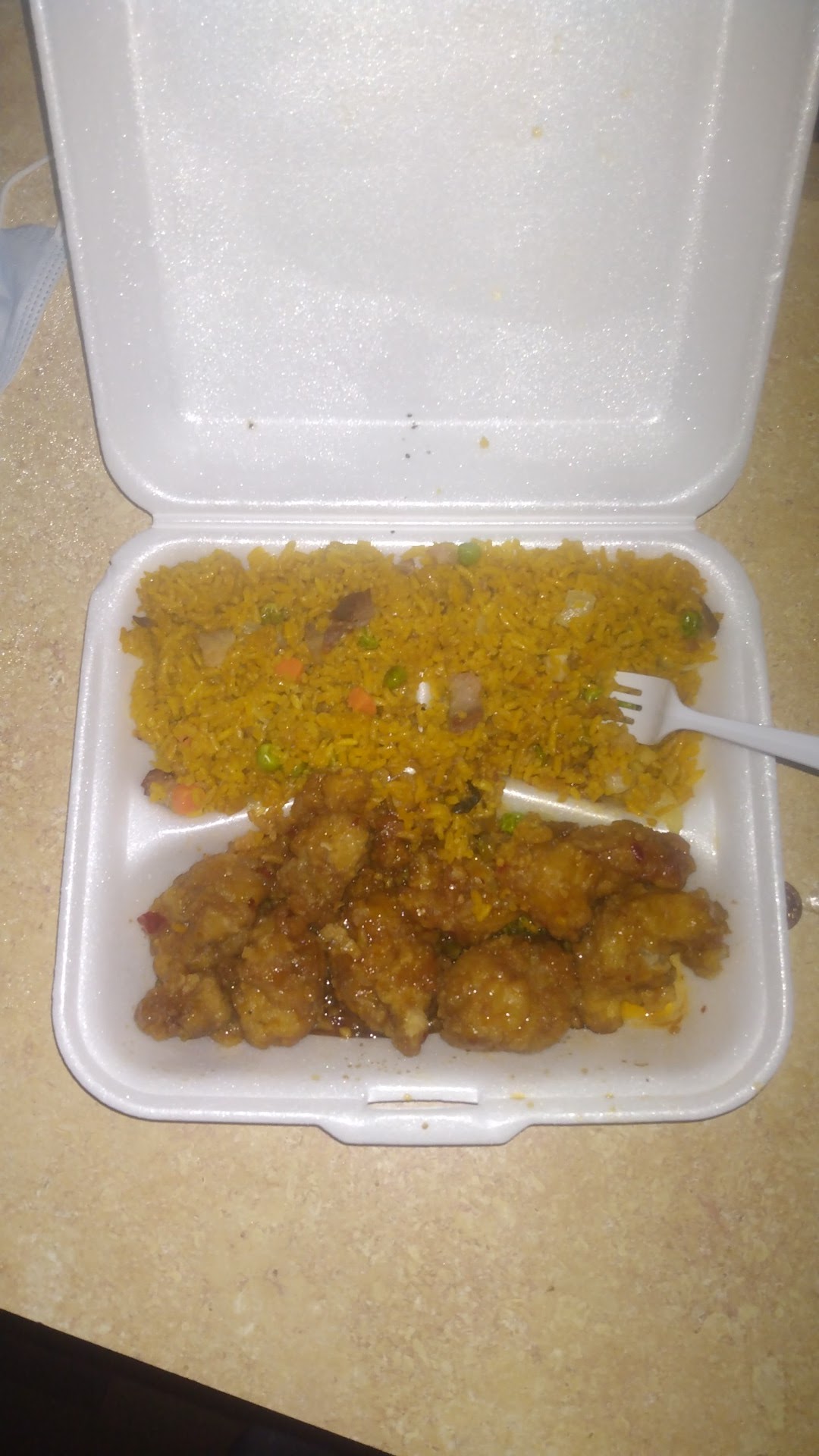ate lunch about 1:45/2 today. I ordered the sesame chicken on the side with sweet and sour chicken special which comes with fried rice. I thought the menu said it came with a egg roll, if it did we did not get one. both my chicken choices were disappointing, the chicken was hard on the edges and dry. a piece of hard chicken actually got caught in my throat, kinda like a chicken sliver🤷 the Sweet and sour sauce didn't taste right to me, at least not like I've had it before. I usually love sweet and sour and today I wasn't a fan. my boyfriend had the steak with onions and his steak was juicy and the peppers were good. the lady at the desk was polite and efficient. they have indoor seating, we sat outside but I believe that seating was actually for the...