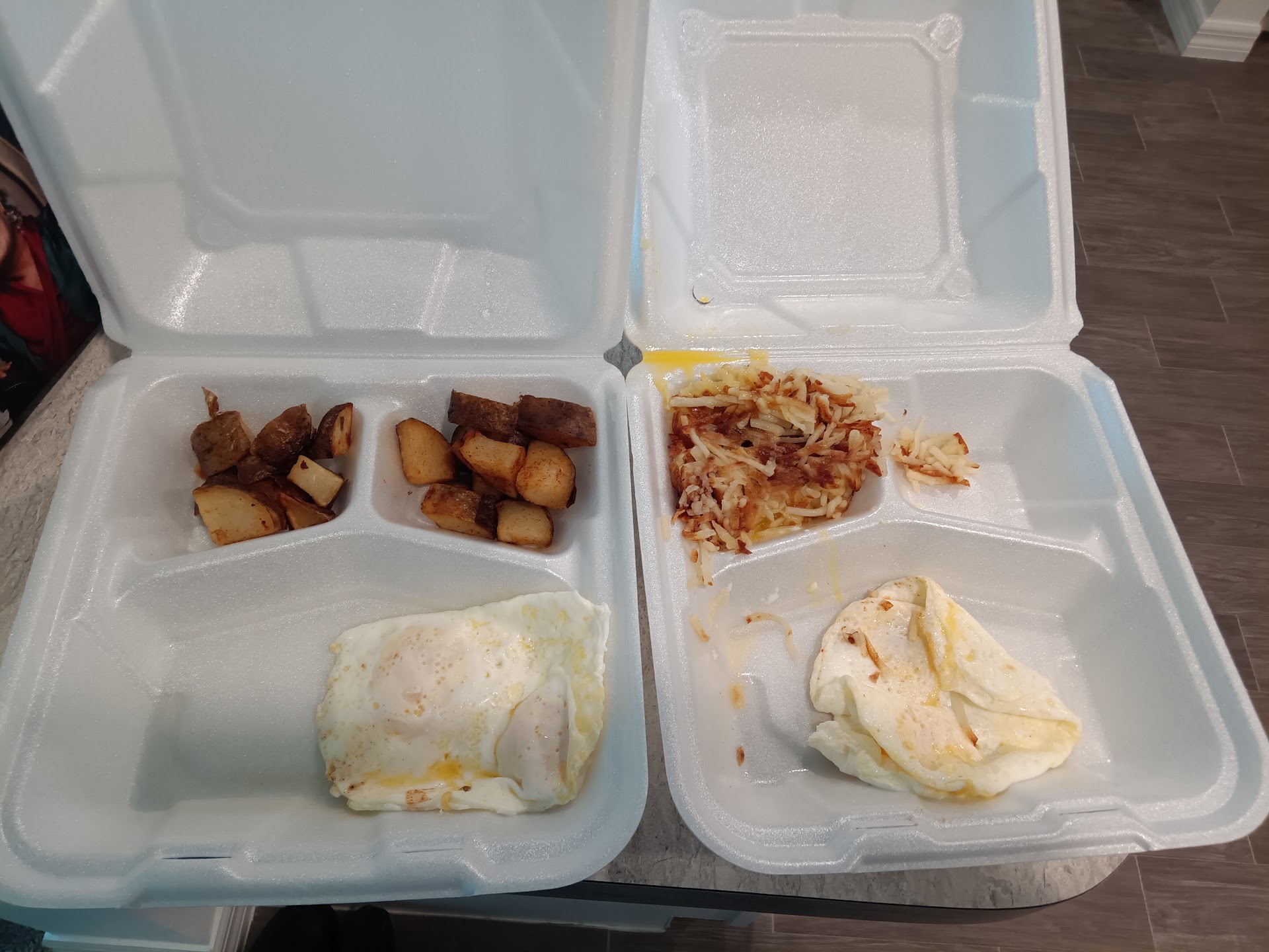 On the receipt/ticket it showed my $5.95 meal, my $2 pancakes my $2.25 English muffin and my 2 drinks... at $2.65 that's $15.50...but the server took my ticket, went and crossed out the meal price and wrote $9 on it...... again... I paid $9 for 1 English muffin, 1 SMALL side of grits and 2 straps of bacon. If my math is mathing right.... it would have been cheaper to ring up each item separately than into a meal since I didn't even receive eggs. Either way, I was charged double for something (I'm assuming pancakes and English muffin) and no one could comprehend why I was confused at paying $21 for something that was only $15.50.