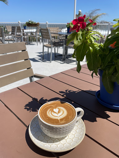 This might become my new favorite boardwalk hangout. You can order all drinks at the bar or proceed further back into the cafe to order food and bakery items. We were greeted immediately upon entering and given menus and instructions for how to order. You can order takeout or eat in and have your food delivered to your table. I really enjoyed the relaxing atmosphere and beautiful view of the waves. I tried their hazelnut cappuccino (strong espresso flavor with just the right amount of sweetness), mint lemonade (a little tart, but still refreshing), and a blueberry danish (oh my word, so good: crispy and delicately sweet). The staff are all very friendly, and I look forward to returning and trying out more...