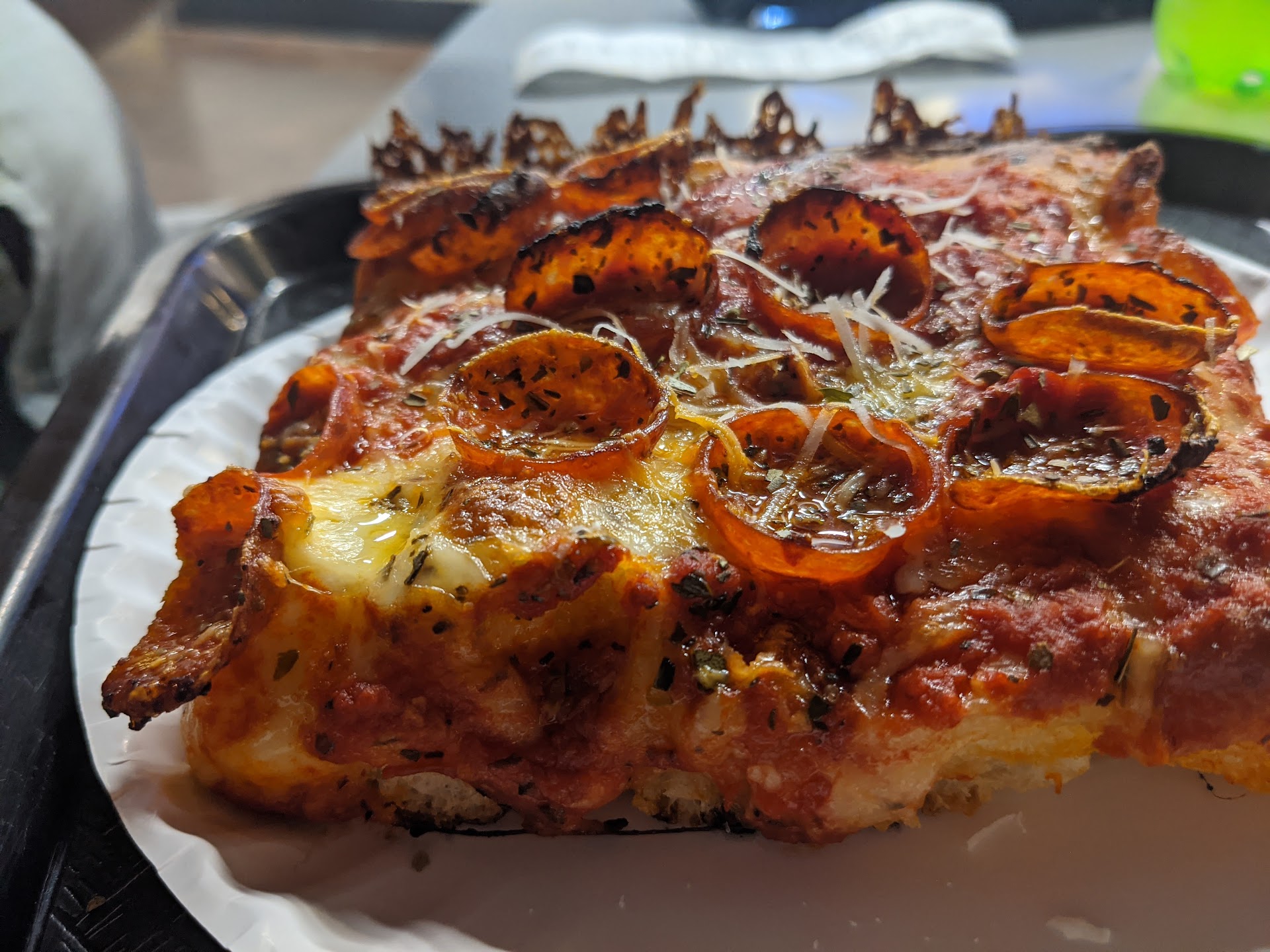 But if you have any self respect, treat yourself to quality food and order pizza at Bakeria1010 instead. It's anecdotal, but everyone I've recommended to go there has left satisfied. Try to go early and order their squares before they sell out. And they will sell out because they're not a factory or prison. Their dough takes...
