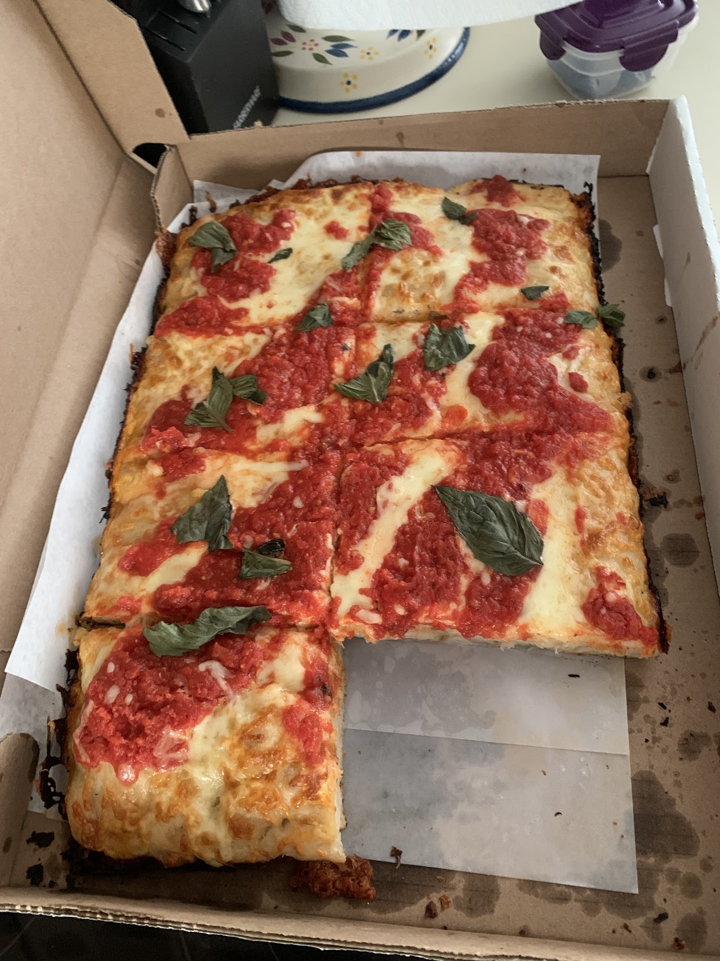 Talk about a house DIVIDED! . Well, we've tried the few new Pizza joints near the OCNJ area (tried the new-ish hot spot in Somers Point a week ago) and everyone said we had to try Bakeria 1010....So for the last Friday in Lent we did. . Ordering was super easy (as opposed to the Somers Point spot). We didn't have to plan ahead, we didn't have to order and pay ahead of time....We just called, ordered, they asked what time we wanted to pick it up, we said ASAP and placed our order. Simple, told us they'd be ready in 25 minutes (called at 5pm on a Friday). . We ordered a "Full" Margherita Square pie $38 (ouch) and a round Bianca (White Pie) $25. . This is where the house got divided, the boys didn't hate the square pie, but the ladies did. Oh boy did they, and they let us know how much they DID NOT LIKE the Square Pie. Like super annoying about it, almost started a family fight.... . If you don't like a thick, dense (yet airy) Focaccia bread type of square pizza....Then this isn't for you. However, I appreciate all sorts of pizza and I can tell the craftsmanship that went into creating this dough. This was on the pricey side, but now we can say we tried it. The dough had a nice sourdough flavor, you can tell the dough was fermenting a while. It was cooked nice and evenly, and was very well executed. Just too much $$$ for us....Sorry, but it is.... . The White Round Pie (Bianca) was the extreme opposite, very thin, but didn't have much crunch to the slice, however it was extremely enjoyable. The balance of cheese and garlic was on point, if we go back, we'll definitely go with a round pie as opposed to the thicker, pricier square pie. Probably try a round Margherita pie as opposed to the thicker square pie. . Upon picking up the pies, the girlfriend noted that the inside was very nice, with seating as well as a "slice bar" where you can just grab a slice and try it that way. If you're strolling Asbury, that's the move right there. . I think our bill for the two pies was $68 and to me that is just way, crazy expensive for two pizzas, with like zero extra toppings. . I'd definitely recommend the slice bar if you're in town. If the place in Somers Point didn't overcook our pie, we'd prefer them. So on one hand we paid a premium for a well done pie that everyone kinda liked but wished it was cooked less, versus this pie that we paid a premium, but not everyone was feeling the thicker style of pie. Either way, for this style, we still prefer the place in Jackson NJ (hate naming names on others reviews). . Gave them 5 Stars across the board because they don't deserve to get dinged on price and a house divided. We knew the price going in, we placed the order willingly.....Not their fault we felt it was a bit over priced. They are doing their thing and we hope others try it and make their own...