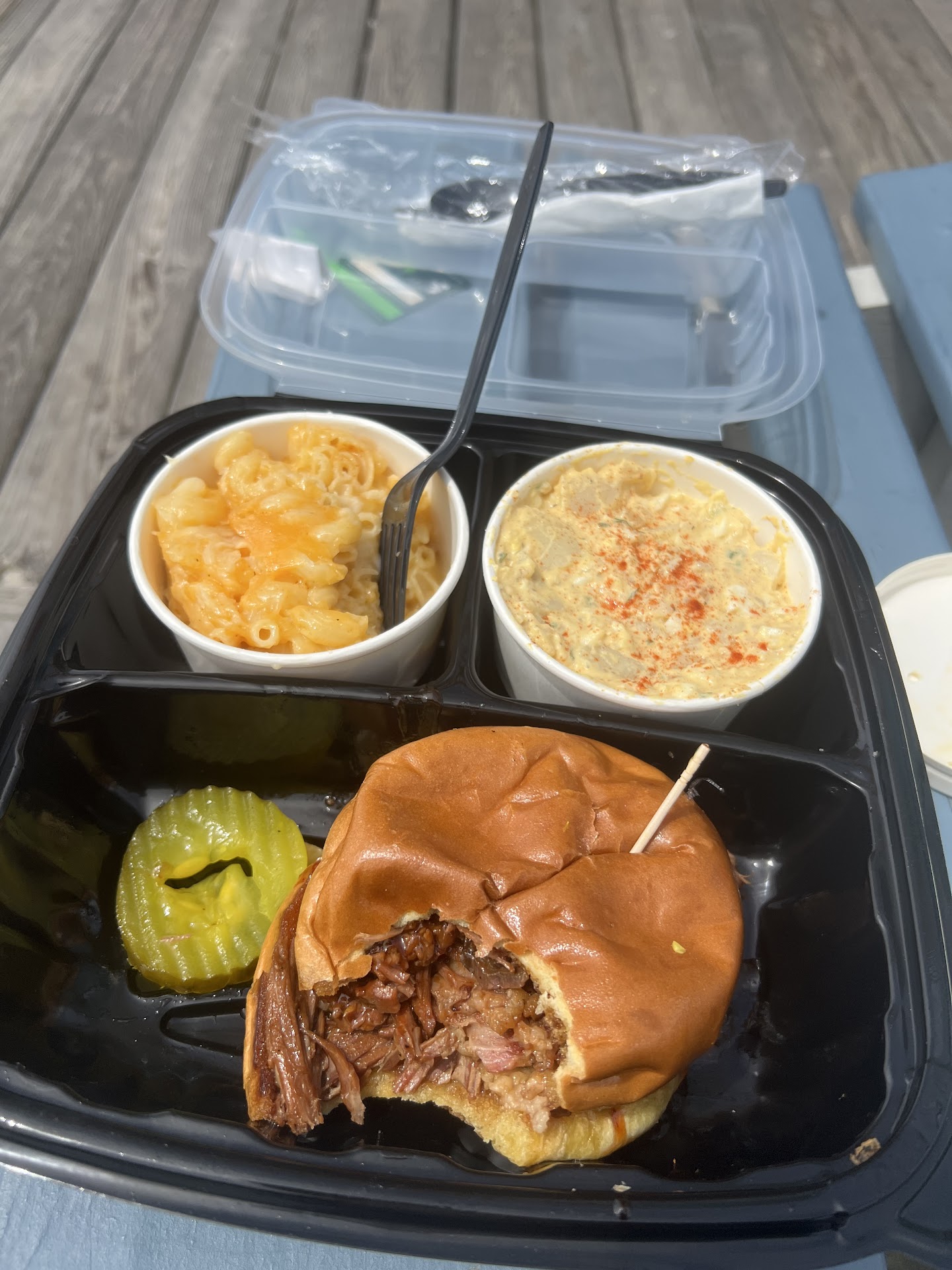 Read moreBecause I saw the 4.9 rating, I gave this place a shot and found out much was left to be desired. I waited ten to fifteen minutes despite there being no line, which would be here nor there, but the food absolutely did not justify the wait. I ordered brisket, which is normally served as a sandwich, which actually makes sense because the meat itself was neglected: Apart from the unmet desire for a simple, sliced brisket, there were chunks of fat in my container of chopped meat that should have otherwise been trimmed off. It was…edible. The baby back ribs had potential that was wasted by an excess of sauce. They were very tender, and I could tell it had a great rub on it, but it was completely obscured by the lathered on bbq sauce, which, in fairness could just be a personal preference (on the side would have been 👍). What is not a preference-based critique is how they ruined otherwise fantastic in-season jersey corn, and left me with a mushy, Old Bay bay flavored mess. Edible, at best. For the sake of brevity at this point, the Mac and...
