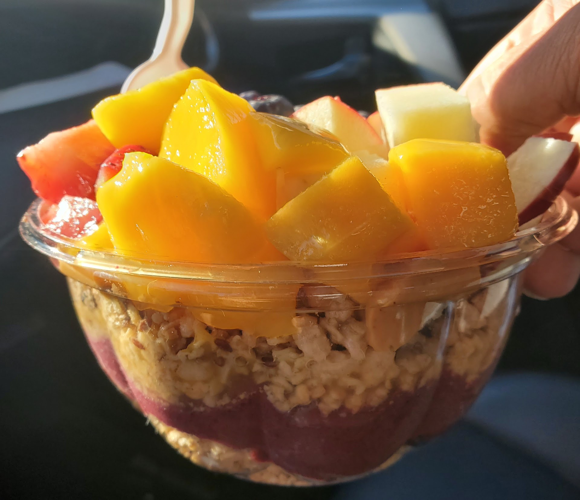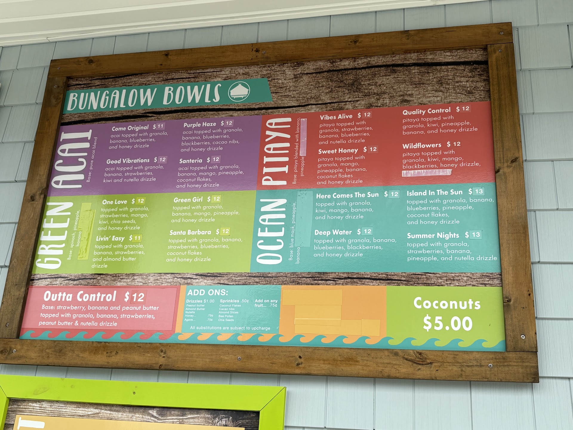 Read moreFirst visit. Bay side of Asbury Avenue on 11th Street. Tropical beach-stand motif with inviting colors features a walk-up window. Street parking. Chalkboard menus with numerous options for regular combinations or a la carte. This customer doesn't tolerate unripened fruit, so Bungalow Bowls earned 5 stars for quality! I ordered a custom acai bowl. I was greeted with a smile, patience while deciding my fruits, and clean service. Gloved hands selected and sliced beautiful strawberries, blueberries, and mango. I added apple atop granola and peanut butter drizzle. Fantastically ripe and colorful, sweet frozen acai, and fresh granola clusters came together for a layered mid-day treat (lunch) that satisfied. Bowl can close with a lid for transport, but I ate mine right away. Prepared quickly (1 minute) and beautifully. Price was on the high side, but the ingredient quality made it entirely worth it. 11/30/2024 - Purple Haze acai bowl. Still outstanding...