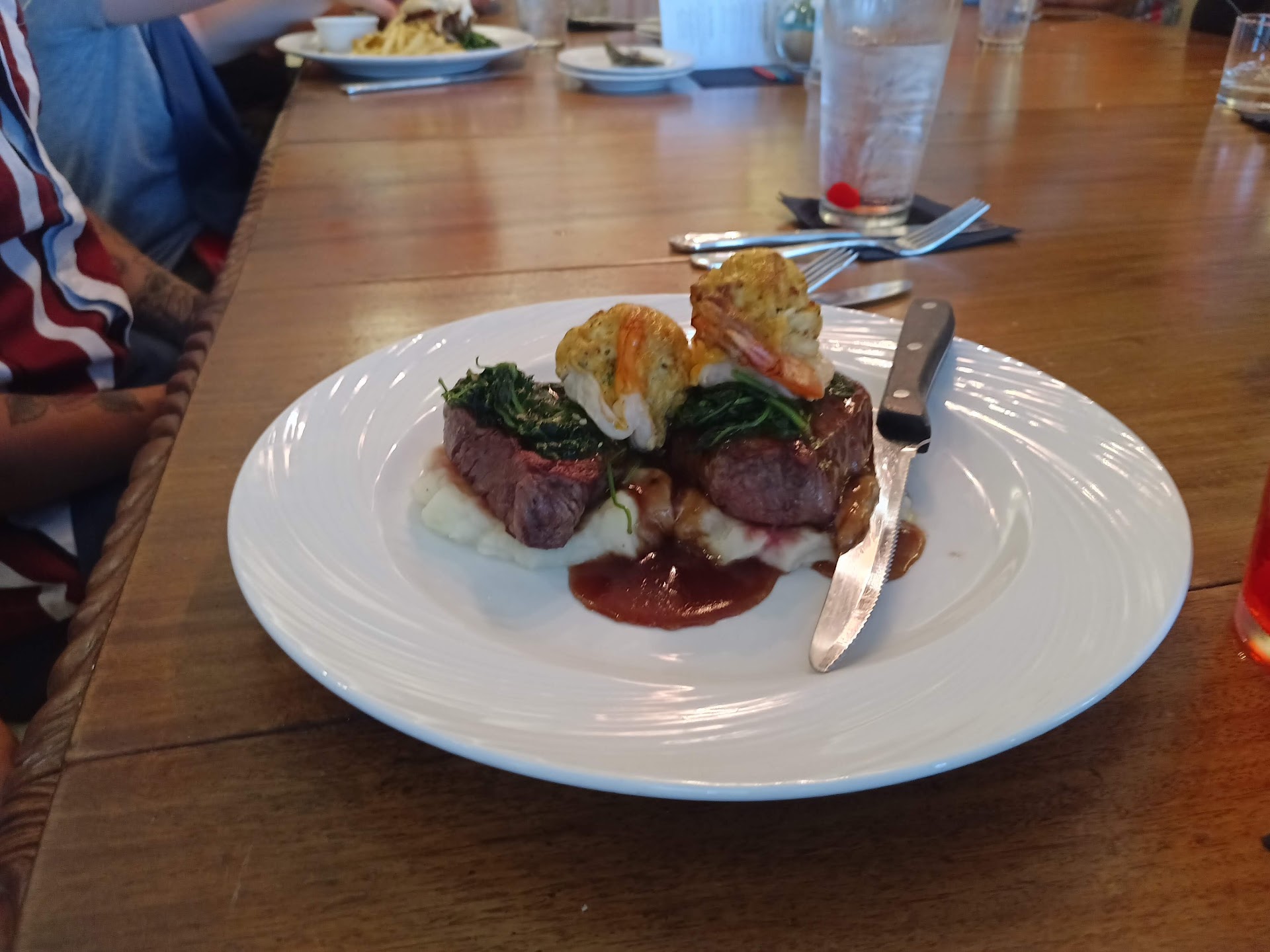 We have eaten here in the past and the atmosphere was top notch. People were dressed nice and there was an older lady who greeted and seated us. We felt welcomed. Also, the owner personally cooked our steaks and they were beyond perfect. That is why we came back. This time was like a Denny's only priced 3 times as much.