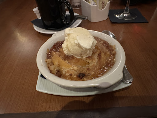 For dinner we all varied in our choices and options from the special fish of the day - Rockfish, to filet and other choices. As I do often when I eat here, I had the filet, mashed potatoes and carrots. The filet was cooked perfectly and seasoned well. Carrots were glazed and delicious. Mashed potatoes were light and fluffy. For dessert I had the cobbler which was delicious as well. Others had different desserts, but everyone left satisfied. I am not a huge seafood person, but on many occasions my wife has had the crab cakes here and she loves them. Several of us had drinks as well, myself included, which was a nice glass of Seaglass Sauvignon Blanc. I really don't think you can go wrong with any of the choices.