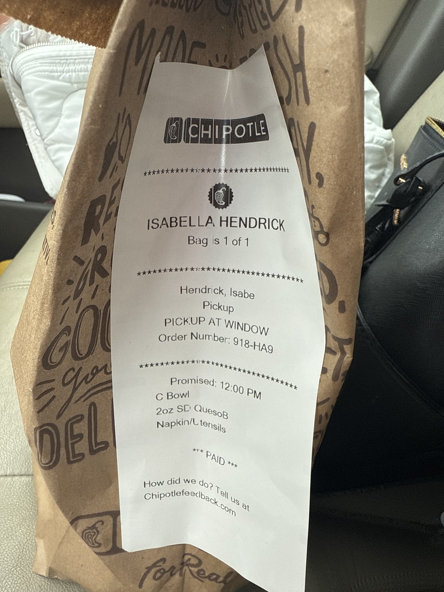 Update: I've been meaning to update this review, and it's no better. I received a call from Chipotle Corporate regarding my foodborne illness complaint. The person, based in Columbus Ohio, called and left me a message. I returned the call 10 minutes later, and had to leave her a voicemail in return. I've had no follow up, no return call, no anything since then. I even left details of the transaction, the receipt, etc., in my voicemail. Honestly, I'm shocked that they aren't taking this seriously as it's the most ill I have ever been from a meal.