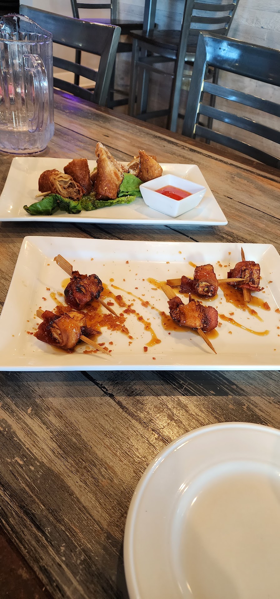 Read moreStarting off with the good, our server was friendly and we received a complimentary bite-sized bacon wrapped pineapple app which was a nice touch. This and the app we ordered, the cheesesteak eggrolls, weren't bad but the entrees were terrible. Not sure how you mess up a grilled chicken sandwich and a cheeseburger but they found a few ways. The bun on the grilled chicken sandwich was completely burnt, the burger for the cheeseburger had a weird rubbery consistency, and the fries were soggy. Really wanted to like this place since it's within walking distance for us but that was the worst food we've had out at a...