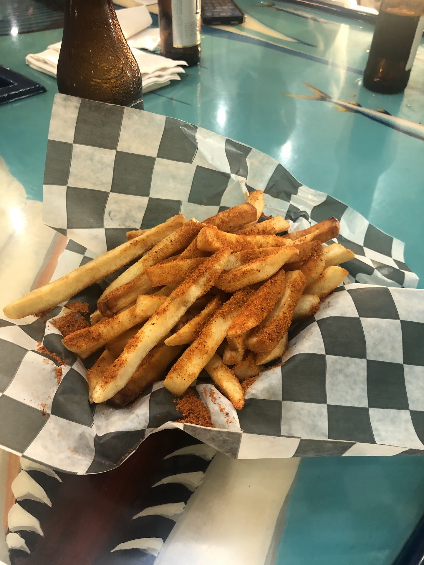 The food was not bad, we gave it a 4. However, we only had the steamed spiced shrimp and old bay seasoned fries. We chose this place because they had seared scallops and steamed shrimp. We were sad to find out that they were out of scallops so we opted for the shrimp only. The shrimp was tasty and fresh but slightly over cooked and came out a bit cold. It had definitely sat there for awhile before it was brought up. I ordered a creamsicle crush. The bartender did make it very well. Tasted just like a creamsicle.