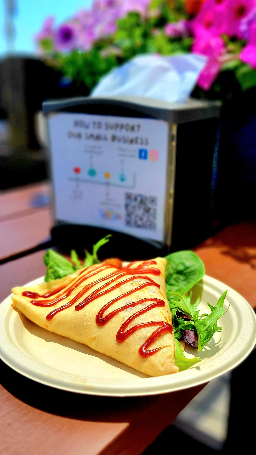 But the real star of the show was that BBQ Chicken Crepe. The moment I unrolled that delicate, golden-brown crepe, the aroma of spicy bbq sauce and tender chicken hit me like a much-needed wake-up call. I dove in, fully prepared for a mess, and boy! did I get one. But you know what they say, "No risk, no reward" - and the reward here was a flavor explosion that left my taste buds doing cartwheels.