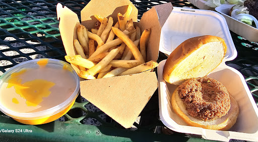 Hubs ordered a burger and fries, which, he said, both looked good and tasted good to him. He had my lettuce and tomato on it, making it better.