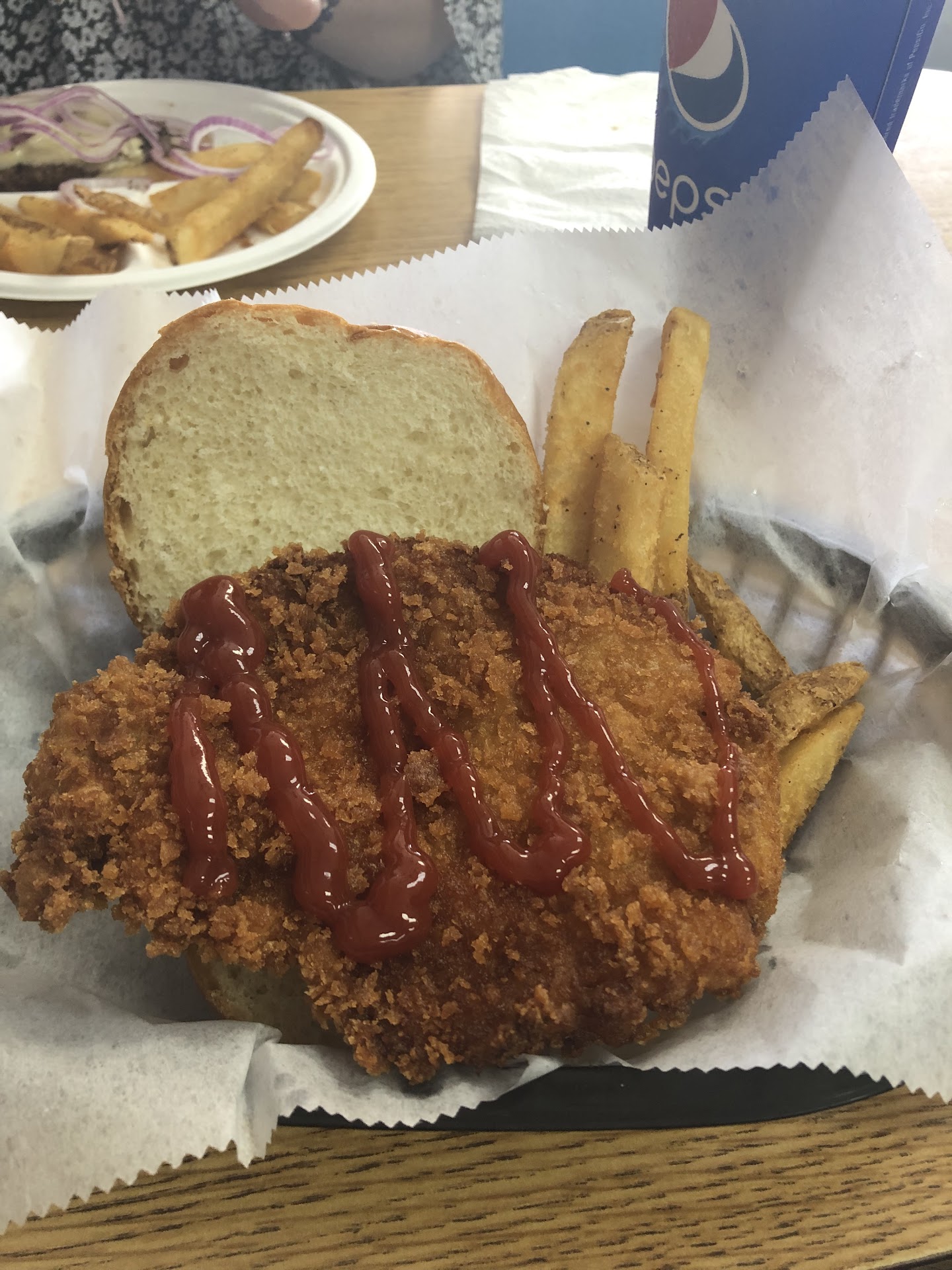 I've been to Ocean City before and been on the boardwalk, but I don't think I ever noticed this spot before. My boyfriend and I were sat pretty quick. Our server was great and very friendly. She definitely was helpful and welcoming, especially when there was an allergy issue when my food came out (my fault, not hers) and she offered to have a new one made. I ordered the Cod Tenders app as my meal, so no fries (pretty sure I'm remembering that right) and he got a Buffalo chicken cheesesteak. Food was good. It was cooked perfectly because the cod wasn't soggy when it came out and it was flaky and crispy. It's a bit of a tight space especially if you're seated in the booths by the entrance because you're right by the cooks line but that's most places on the boardwalk. I wouldn't come here with a huge group, but definitely great for smaller...