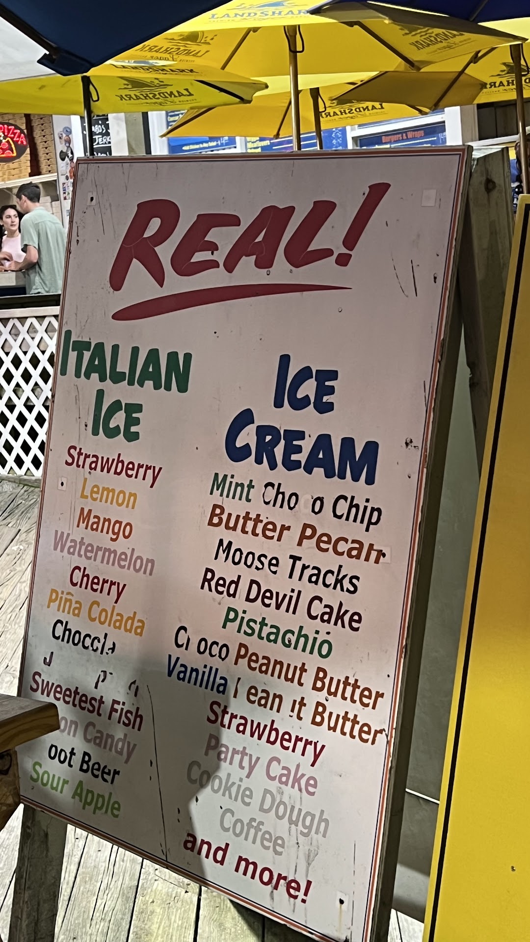 We tried vanilla, chocolate twist, and creamsicle twist. Flavors were all great however the ice cream was not set enough - they were dripping down the cones as they were handed to us. This was also in the evening when temperatures had dropped so we scrambled to eat our ice cream as everyone walked by us on the boardwalk staring at we dripped ice cream everywhere 🤣