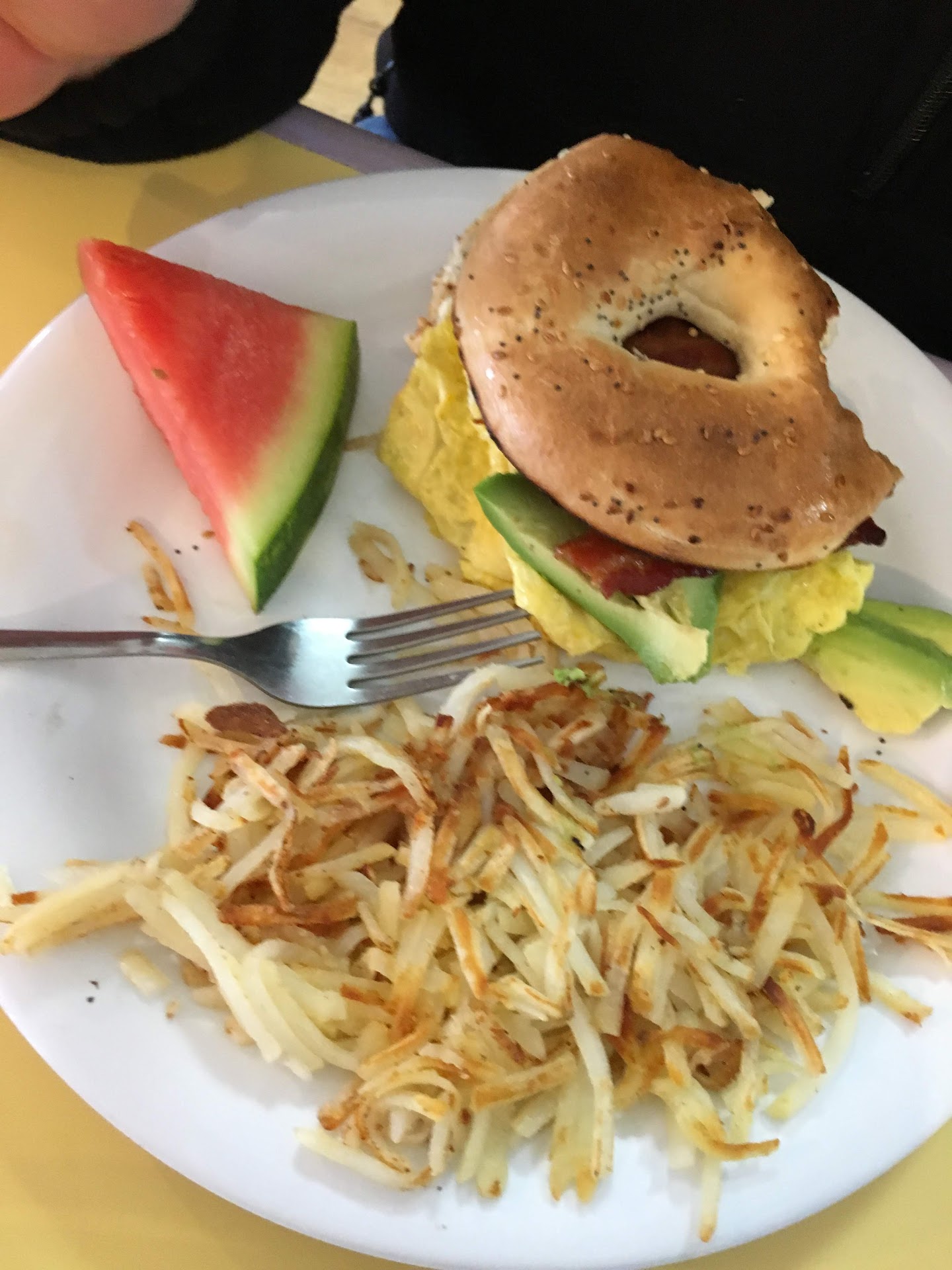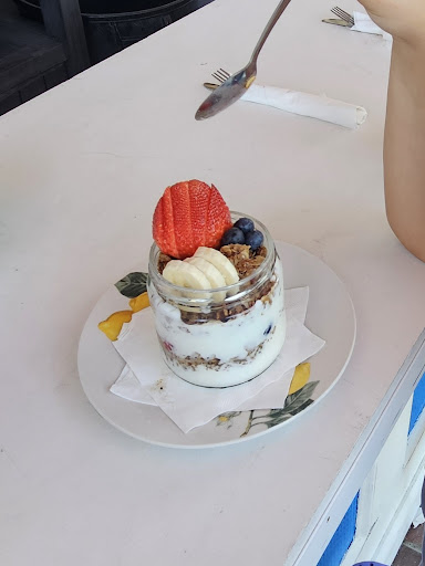 Read moreWe ate two breakfasts there. First day, I think our server was Malia! She was EXCELLENT. Wrote down nothing. Remembered everything. Food was delicious - pix are of the Health Nut French Toast and the large fruit cup. We also had delicious smoothies made w real fruit and loved the steak and eggs and the Almond Joy pancakes. One tip for diners / suggestion for owners: When the (I don’t wanna say older but can’t think of another way to say it) guy is at the host stand, he’s actually a deterrent to business. He’s not unfriendly, but he’s actually not good at the host job. We sat outside right by the entrance and watched him tell probably 10 different parties of two or four people that it would be a 20min wait and then launch into a defensive explanation about how it’s a busy day and they should have gotten there earlier. We saw at least a few parties just leave. The thing is - it was NEVER a 20min wait while we were there. He told us the same thing when we arrived and we were seated in less than five min. As was just about about every other party that arrived during our meal - including a party of 11! He also had a girl there write names on a list if there were a few parties waiting, but then forget to check the list and just give tables to the next people. We saw that happen at least twice. He also changed the wait staff sections in the middle of our meal, which seemed to confuse some servers and have them with tables all over the place. I honestly think he’s a nice guy but maybe this could be a gentle suggestion to greet people w a more welcoming vibe. And be open to being trained to be better at using a wait list and estimating wait times! Breakfast turns over pretty quick. “We’re so glad you’re here. We’re thrilled to be so busy. Wait time is likely to be 5-10min. We’ll get you seated as...