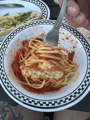 Read moreWife called and ordered a large 1/2 plain and 1/2 pepperoni, large side salad, and an order of fries. The employee on the phone informed her it would be ready in 20 minutes. I promptly showed up in 18 minutes to pick up our food. The employee at the prep station told me that they were waiting on my pie. No biggie.. I get it.. With only one two top in the dining room and seemingly not an abundance of pies being prepped, it seemed like a relatively slow night. First thing that warrants this review is that employee was eating a pepperoni pizza at the prep station. In my old pizza days, that was a huge no no. Doesn't seem sanitary for someone to shove food in their mouths then handle yours. Next thing that I noticed is that my pizza was just going in the oven at that particular moment. 8 minutes later, I was informed that my pie was done. I paid my bill and drove the 4 minutes home. The wife and I ate the salad, had a few fries then went in for the pizza. As sort of expected with an 8 minute cook time, the pizza dough was basically raw in the middle. Time to fire up the oven and wait another 20 minutes to eat.... update on food. Fries were decent, semi soggy from sitting in a box waiting on the 8 minute pizza, but ok. Salad was as expected.. lettuce, 4 slices of tomato, a few black olive slices... pizza...