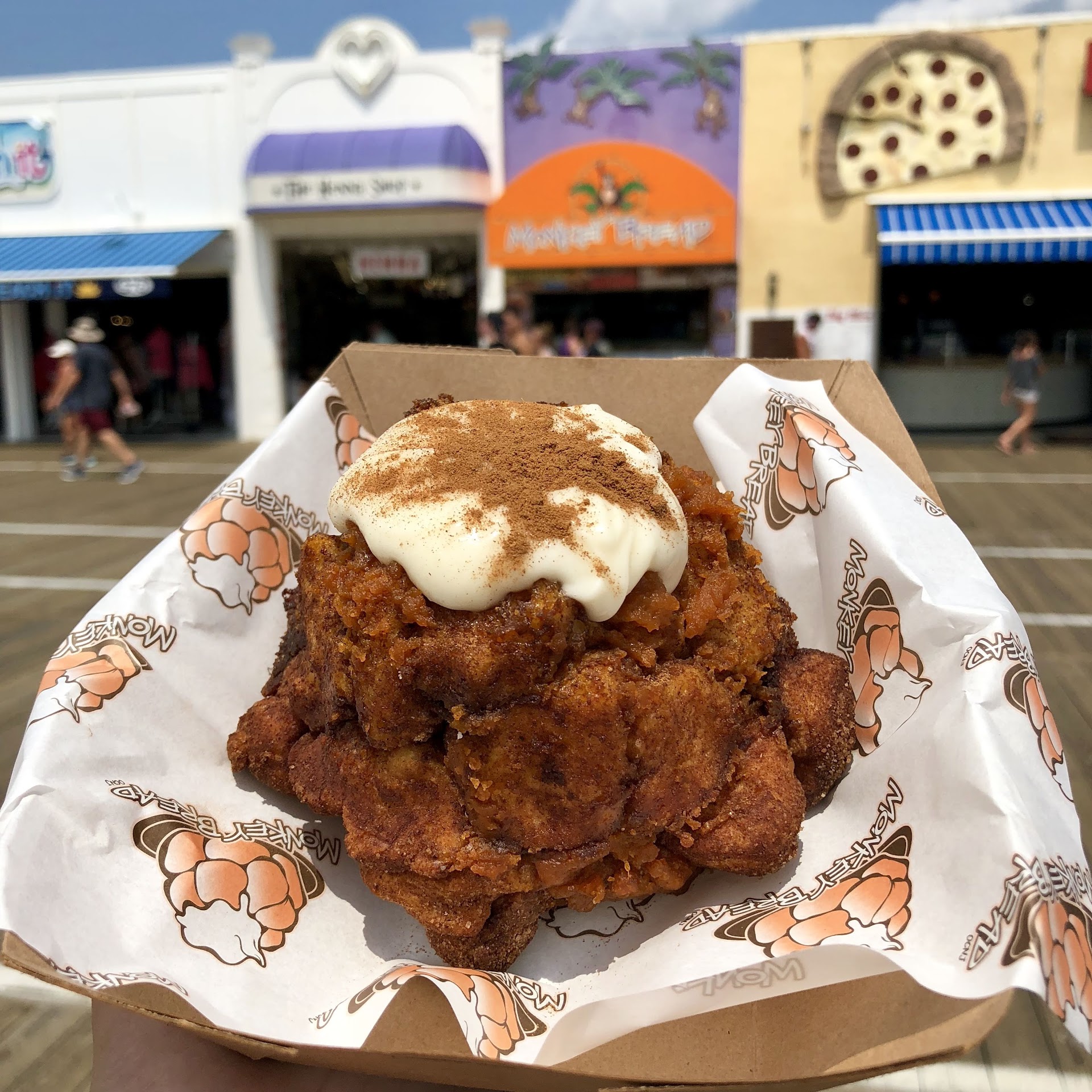 Two years ago we visited the Asbury Avenue location during a trip to the beach. While we were disappointed that the larger café was closed, we were pleased that there was a boardwalk location. The prices are not unexpectedly high ($5 for 2 minis) and the flavor selection for the full-size monkey bread looks very nice--Nutella, caramel pretzel, etc. Unfortunately, if the minis we had were any indication, the quality is not as high as at the old location. The monkey bread was not served warm, there was only a dollop of the icing (as opposed to icing in the center with the larger original monkey bread) and some of the bread was a little hard (which one doesn't expect from a bakery and at that price). It also took a little longer than we expected to be served our brewed iced tea (which was pretty good). I cannot speak for the other menu options, but we were disappointed and likely will not be...