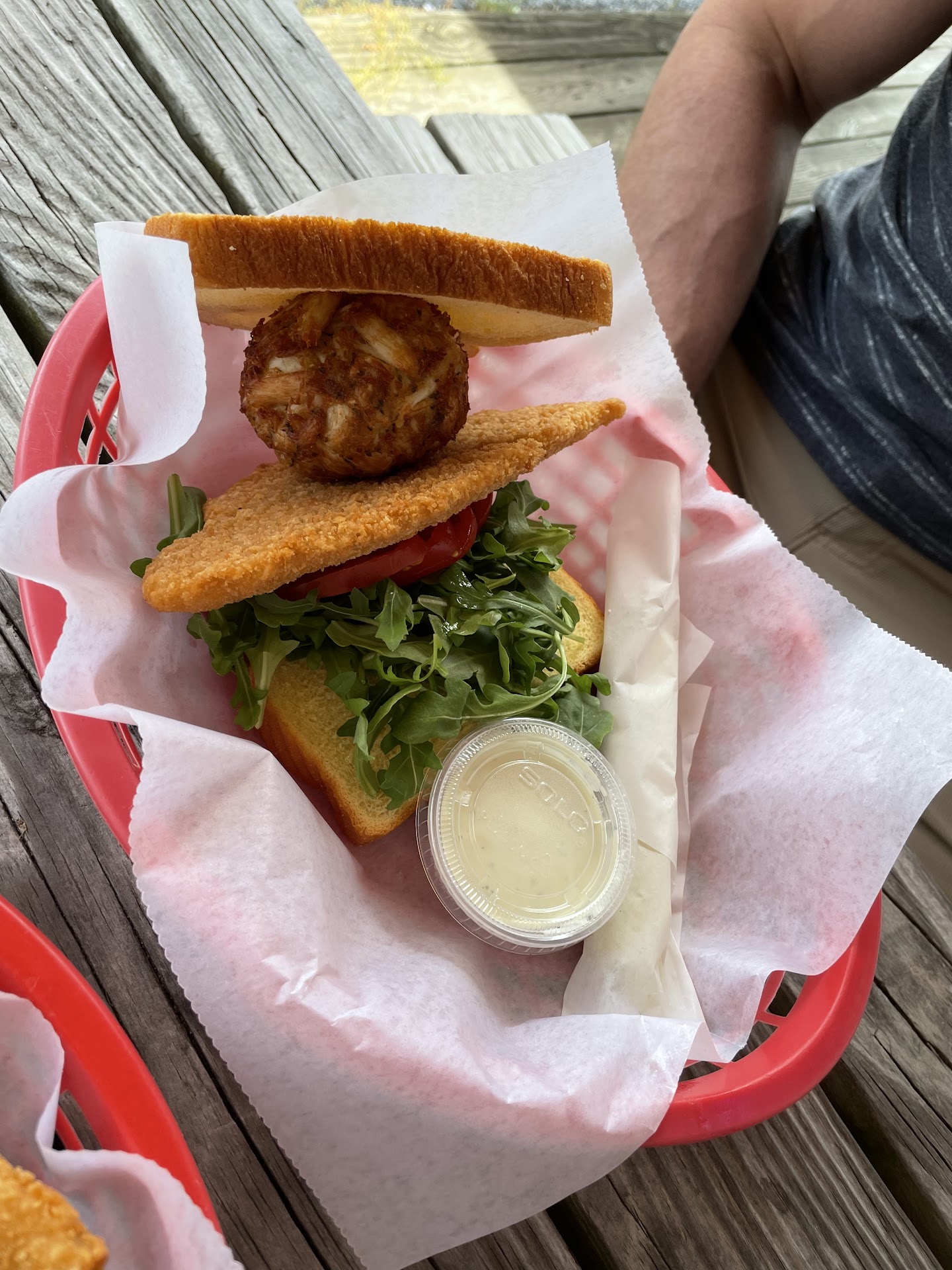 I had the mermaid with a crab cake broiled and fried flounder. The fried flounder was so crispy on the outside and soft and flakey in the middle. I love the homemade tartar sauce which was so good with chunks of horse radish. The coleslaw was crunchy and not overly drowning in dressing. The crab cake was broiled and it had very little filler. It was so meaty with crab every bite.