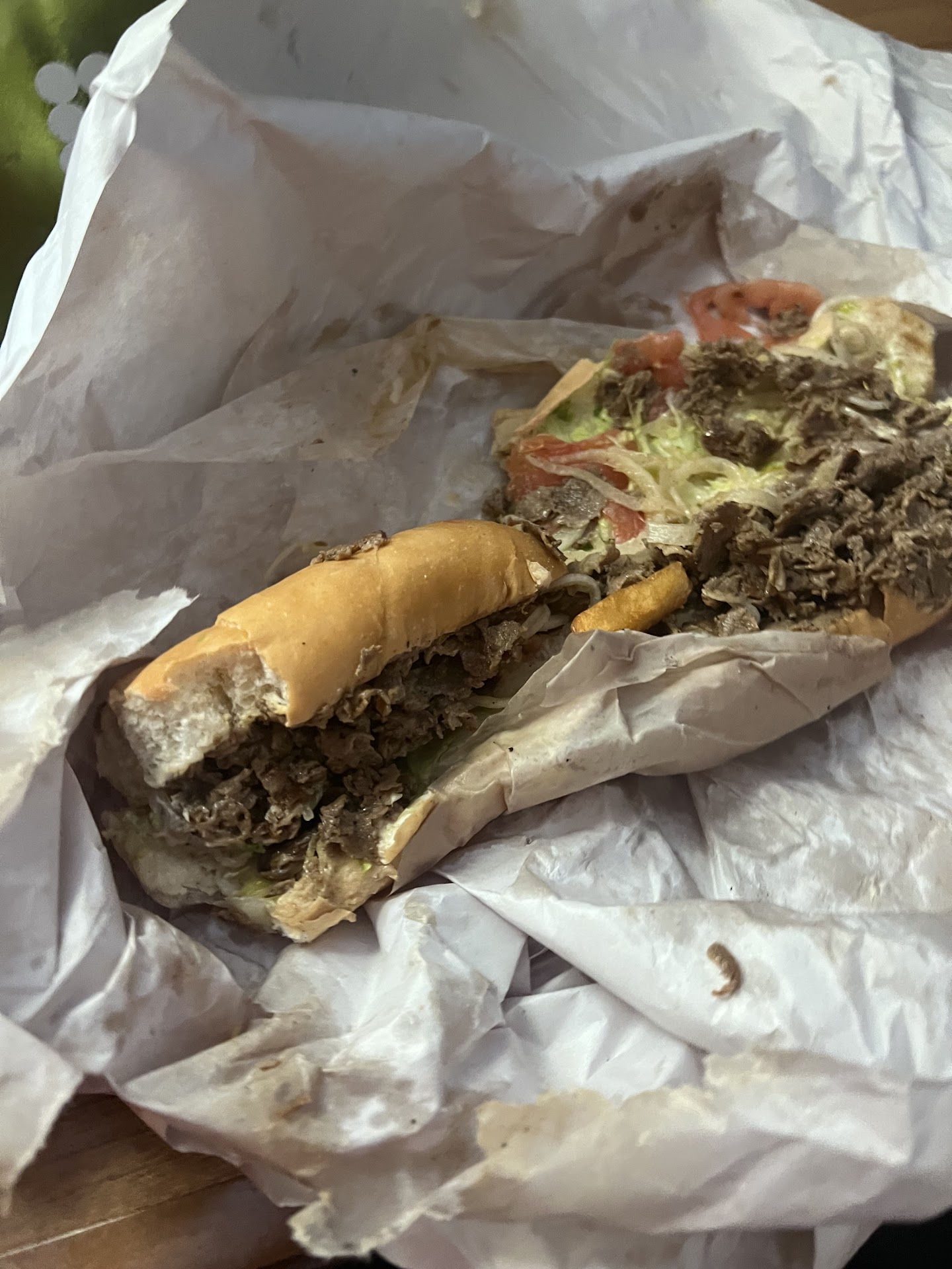 The Philly cheesesteak hoagie was PACKED with meat and only $7.99, but it also was a little salty for me and the flavors didn't really mesh, possibly due to my selection of toppings. It was a little too salty for me and I ate half and discarded the other half. Philly cheesesteak is sliced beef, grilled onions and mushrooms "wit wiz". Disappointing, but maybe it was just my personal...
