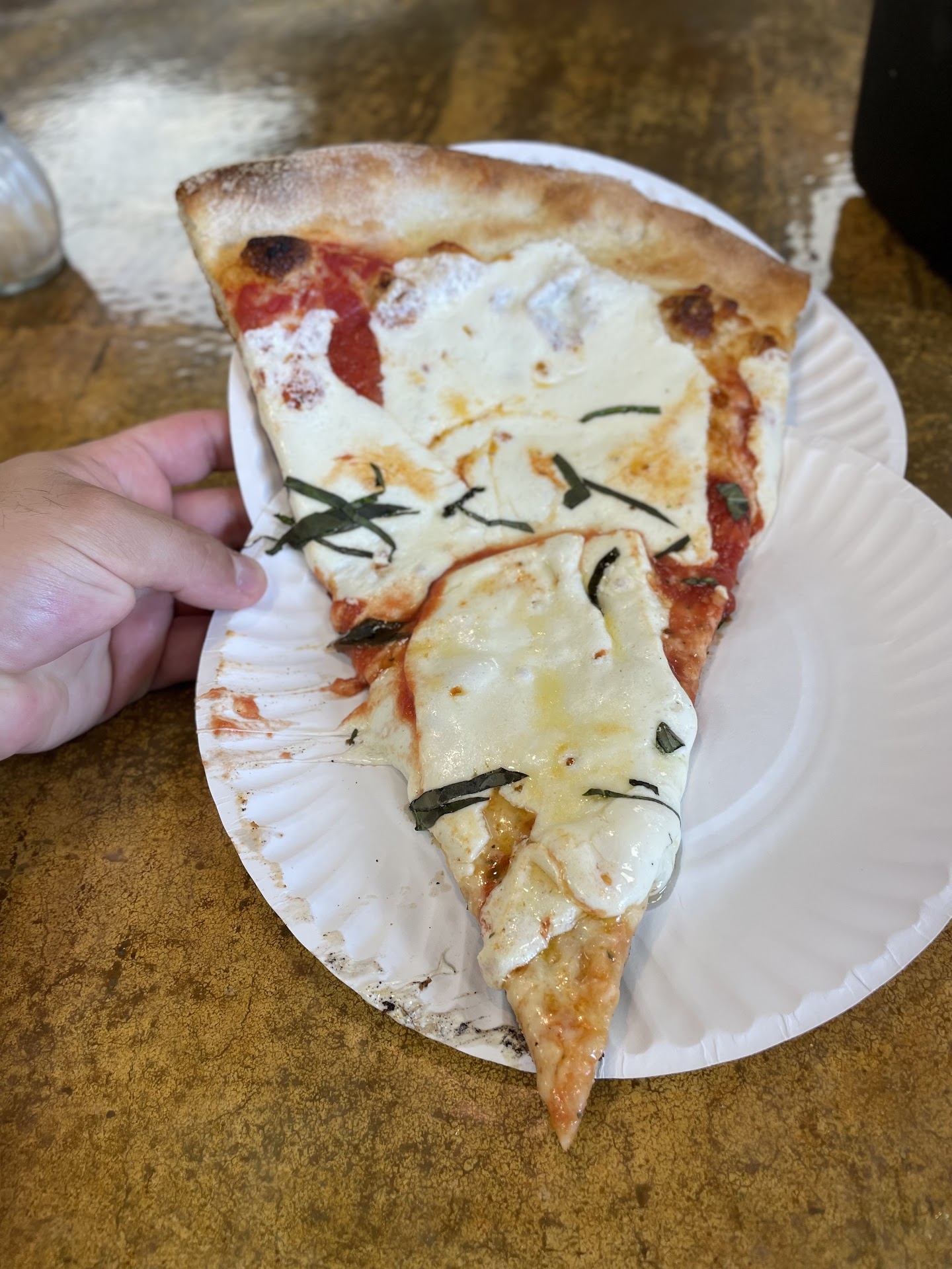 The waiter finally took our order, water and slices of cheese pizza. You wouldn't think that would take that long, right? You order a slice at most pizza places, the pie is already made, they just have to throw it in the oven to reheat. Upon entering, you could see numerous pizzas at the front counter. But...we waited and waited for our slices. Two tables near us were seated after us, ordered after us (by about 5 minutes) and one got a full pizza and the other got slices well before our server came over to us and said it will a few more minutes. It took almost 5 minutes from this point until we had our food. We only ordered slices. Why did the table that came in after us get their cheese slices before us? They had a different server that was actually paying attention to them, making sure their food was there. Not standing at the front of the place talking to the hostess for 10 minutes before getting our slices in the oven. Yes, you read that right. Those other two tables had their pizzas before ours was put in the oven to heat. We waited for below average pizza. It was very bland and nothing special. But now I understand why there wasn't many people here when the place right down the boardwalk was full and had a line spilling out onto the boardwalk.