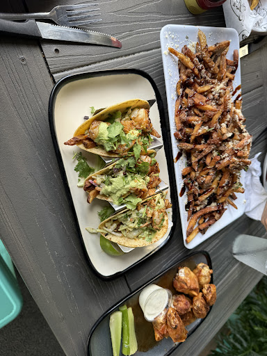 Food: rhino fries: would not get again, great portion size, not skimpy on seasoning but the sauce and the garlic did not go well together, did get soggy after 3 minutes so eat fast. Ziggy Wings: would get again, great flavor and goes well with the ranch, downside was that the wings did not have much meat and were fattier than most wings Iāve eaten. So Cal tacos: would get again, amazing tacos if you are a spicy shrimp taco person, cook perfectly and lacked dryness or rubberiness. Just be careful as the taco shells do fall apart easily on the bottom. Old pro wrap: would not get again, it was a nice sized wrap. The only good thing about it was the bacon had flavor and was crispy, other then that the whole wrap was tasteless.