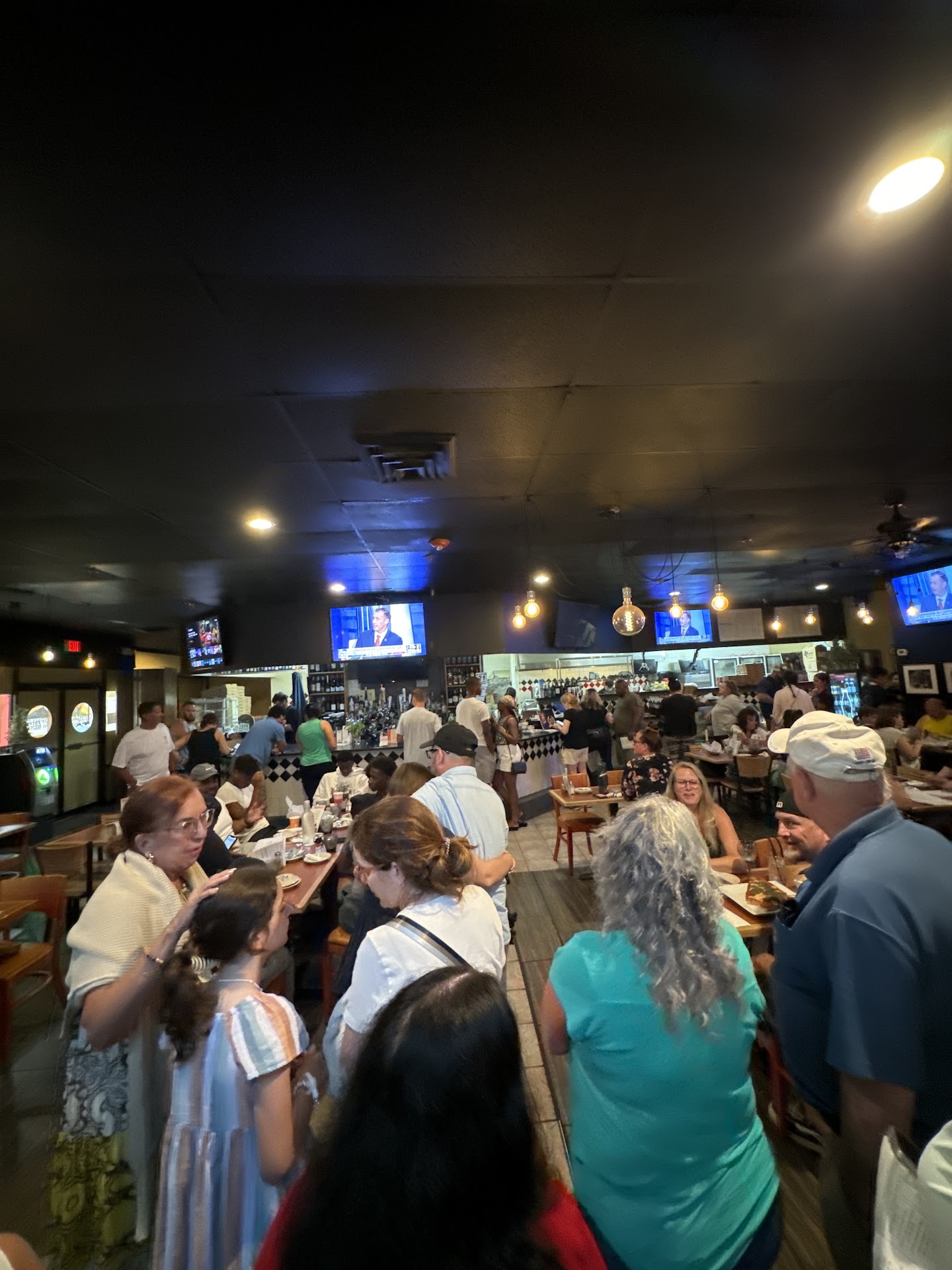 Long version: We arrived around 8:45. The restaurant had posted they closed at 10 so we assumed we had plenty of time. We werenât looking for a long drawn out dinner. We were all tired and ready to get back to our hotel for the night. We were seated quickly and then a young girl came to get our drink order. While she was taking our drink order, a male server came to the table and stated that he would get it and asked us to repeat our order. We gave him the drink order. He asked us if he could get us anything else. We stated no that we would order when he came back. Approximately 15 minutes went byâ we did not get drinksâ before another lady came and asked what we ordered. We told her we had only ordered drinks and hadnât gotten them yet. She said âWhat kind of food are you ordering?â I started to answer her and she said âI need to get your order so we can get out of here.â As I started again to order, our waiter walked up to our table then and dropped off our drinksâ one of which was a very large sprite when we had asked for a kids size for a 6 year old. After dropping off our drinks he said âCan I get you anything else?â I told him weâd like to order. He took the orderâ 1 half cheese, half pepperoni and bacon pizza, 1 pizza with pepperoni, bacon and jalapeños, and one order of chicken parmigiana and pasta. He left and a while later the pasta came out by itself. Several minutes later a young lady brought out a half cheese and half pepperoni, bacon, and jalapeño pizza. I told her that wasnât correct. She left with the pizza and met the waiter who had the other pizza in his hands. The waiter then brought both pizzas and said âWhatâs wrong with the pizza? Itâs what you ordered?â I explained the mistake and my husband said that he would just keep the pizza. The waiter walked away with it. He then brought the correct half back to the table and gave it to my husband and said they were remaking the wrong half. About 5 minutes later, he returned with half a pizza that was âcorrectâ but it seemed as thought they had taken the already baked cheese pizza, added the requested toppings and then popped it back into the oven for a few minutes as the toppings were barely warmedâ and by that I mean the pepperoni wasnât even hot, and literally every topping except one piece of pepperoni fell off the slice as soon as one was picked up. The other pizza was mediocre but not terrible. The chicken parmigianaâ chicken was crispy and tasted okay. Noodles were way over cooked, and the sauce tasted like tomato sauce directly from a can. After adding an abundance of salt and red pepper flakes, it was barely passable, but much improved for what we had to work with. I also found it interesting that as others were leaving the restaurant, someone was telling them that most of the people who are here on vacation eat here all 7 days they are here! It was definitely a one and done for us. Could have just been an off night but for $80 I wonât be back...
