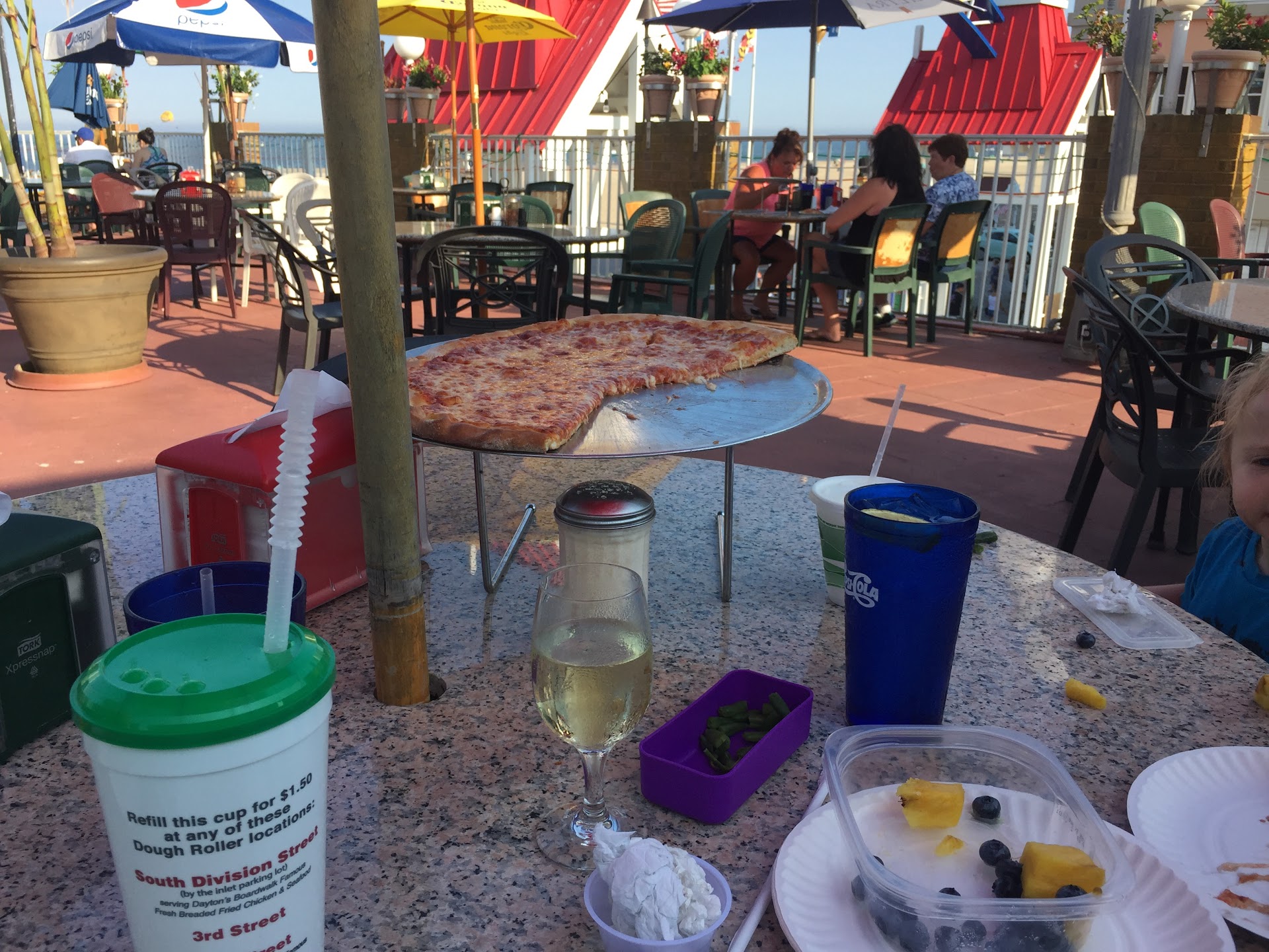 Read moreIf you have any concerns at all about coronavirus (or cleanliness in general) then do not eat here. We ate outside on the rooftop and I felt so uncomfortable eating there that in hindsight we should have just gotten up and left. We were seated at a table that had not been wiped down (had Parmesan cheese all over it). What's worse is that the lady who sat us there appeared to be a manager. There were plenty of other socially distanced tables that we could have been sat at. Although I can't be sure if those were any cleaner. Being in view of one of the hostess stands we could see that non of the menus had been wiped down between customers. Which is basically coronavirus sanitation 101 for restaurants. One of the servers wore her mask below her nose the entire time we were there. I watched one of the tables be wiped down with some spray and a couple of the thin napkins they supply on the tables. The pizza was edible although it was super greasy. I know from past years of eating here not to get any toppings (they are not fresh) so I just had cheese. At one point a very young girl let a couple sit directly next to another sat table (no six feet distance there). We have been out to eat several time since restaurants have reopened and this was the first and only place so far that showed zero effort in making people feel at ease and didn't follow the covid-19 guidelines that restaurants are supposed to follow (I work in a restaurant and know all about these protocols). The only reason I gave two stars instead of one is because our waitress had a very pleasant demeanor and she was efficient at her job. She did a great job even though you could see that all the servers outside were overwhelmed. She was actually the only reason that we ended up staying. Tony's has always been a staple on the boardwalk and I do hope they can turn...