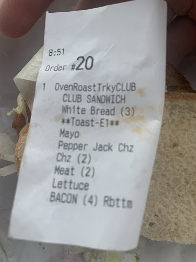 Read moreWent in and ordered a roast chicken sandwich on a brioche bun printed out my ticket then told they me they were out of chicken so I reordered Turkey and ham club sandwich. I get home open it up there's only two pieces of bread (club sandwich has three pieces of bread ) 2 little pieces of Turkey no ham no bacon and garlic aoli haven't eaten all day this took place at midnight now I'm extremely pissed of got back in my car brought it back gave it to the manager I asked him wtf is this he just shrugs his shoulders I told him you charge me for a club sandwich I demand my money back and told him you don't like all the money I spend at wawa again I get the shoulder shrug I spend over 100+ a week conservatively . the days off me spending money at wawa are done if you want my business back you tell me what are you going do get it back I'm very laid back person but I'm...