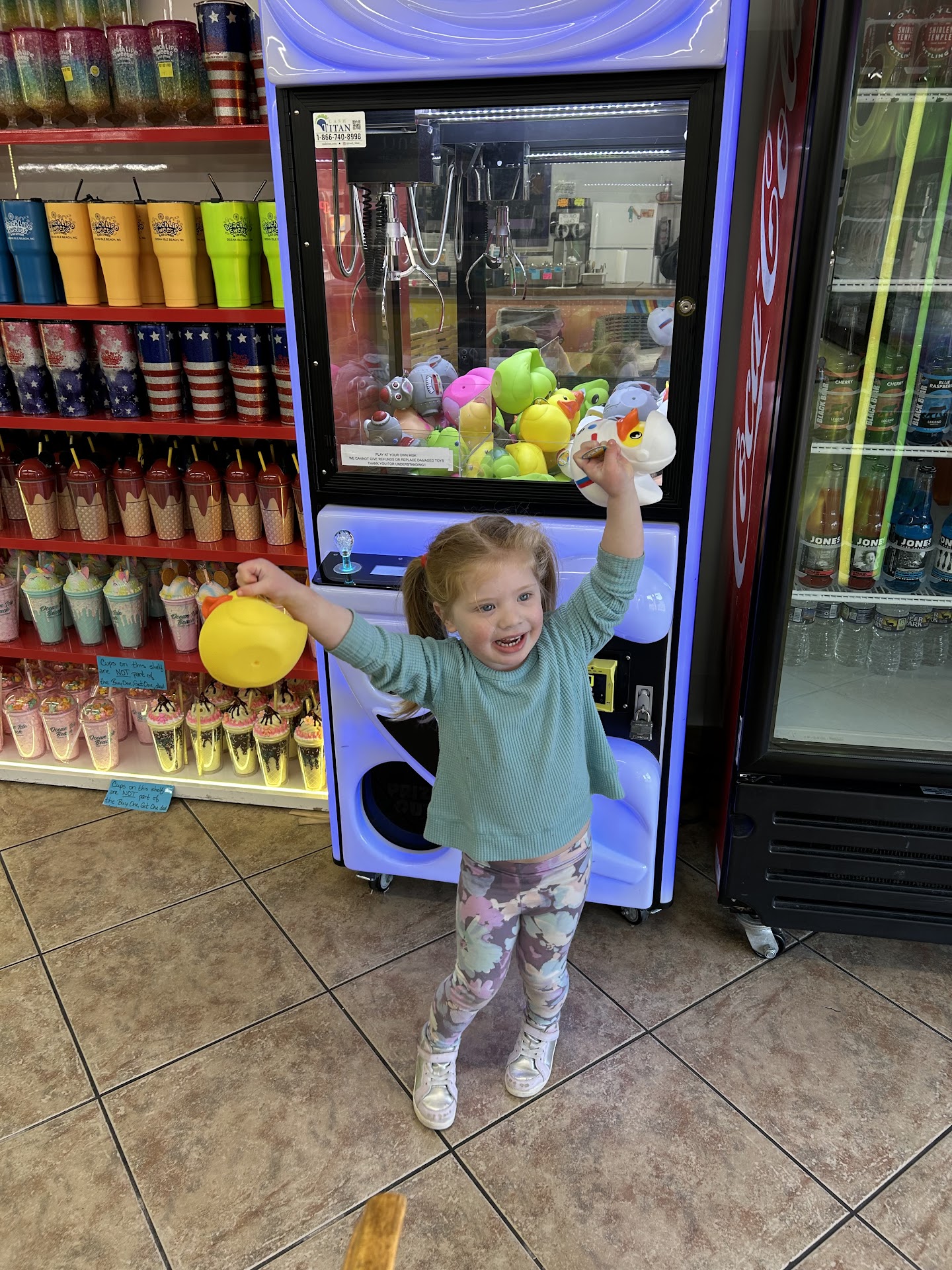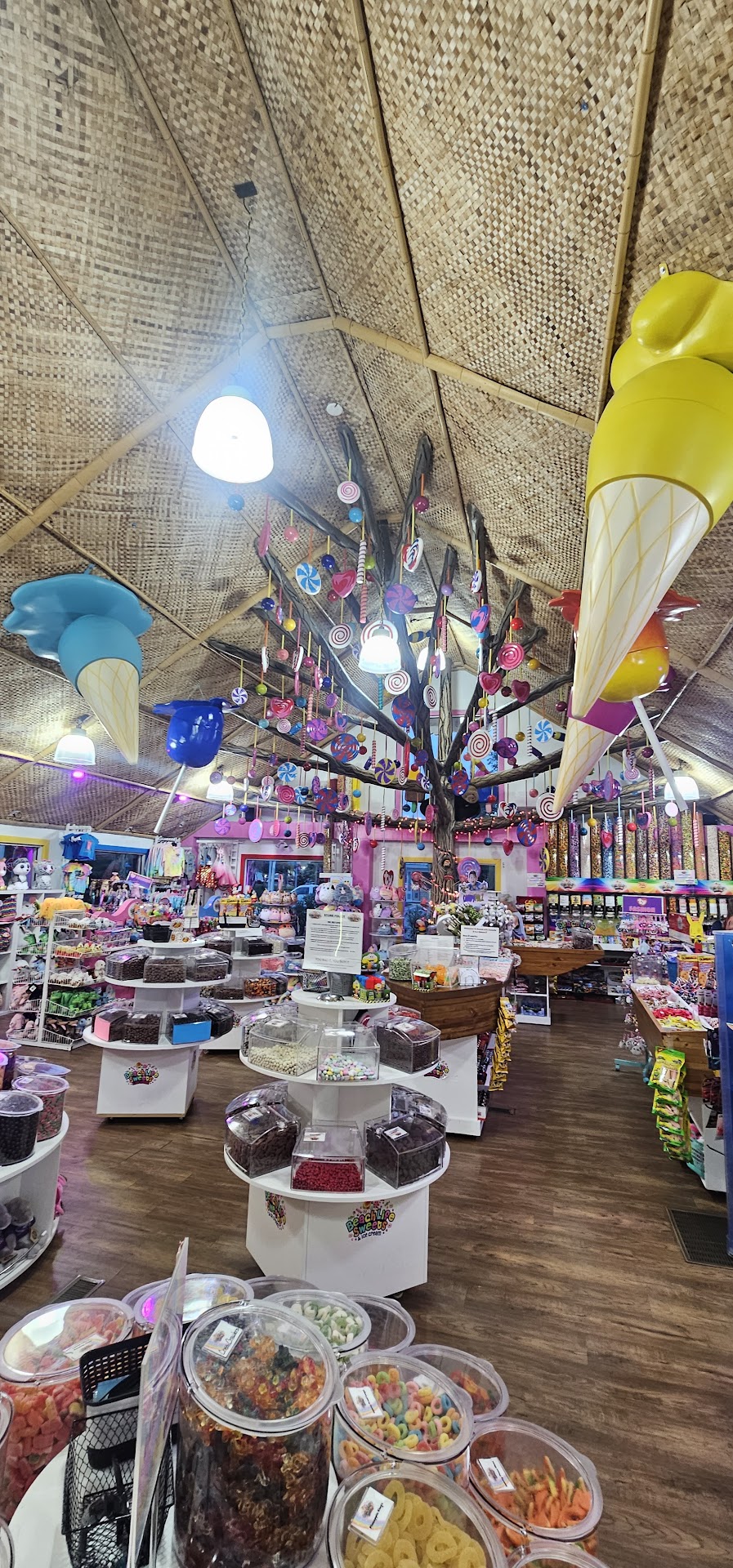 The ice cream side was wonderful and helped get my kiddos get over cream quickly! I was disappointed with the candy side of things, however. My older son brought $3 and asked if he could buy some candy with his money. I told him yes, as the stores are connected from the inside, but I didn't want to take his sister in because I didn't want the parental fight that goes with little kids seeing all the goodness. My son came back scared less than two minutes later. "Mom, I need help, I got too much" needless to say we all ended up going into the store. He hit the Skittles handle and out came a lot. Parents be next to your kids I tried talking to the staff letting them know the situation and they said if it is in his bag he buys it. Needless to say that mistake was a $15 bag of candy and...