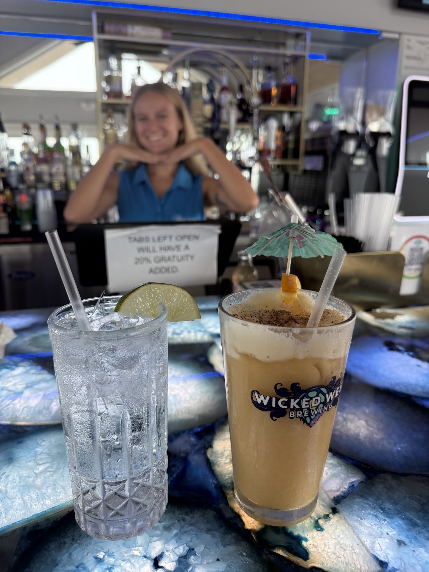 Katie, the bartender, was an absolute standout. Her positive energy and welcoming vibe really elevated the whole experience. Great music playing, plenty of TVs, and you can see the beach and the park from the outdoor seating—such a perfect setup for a relaxing evening.